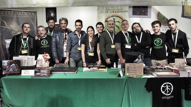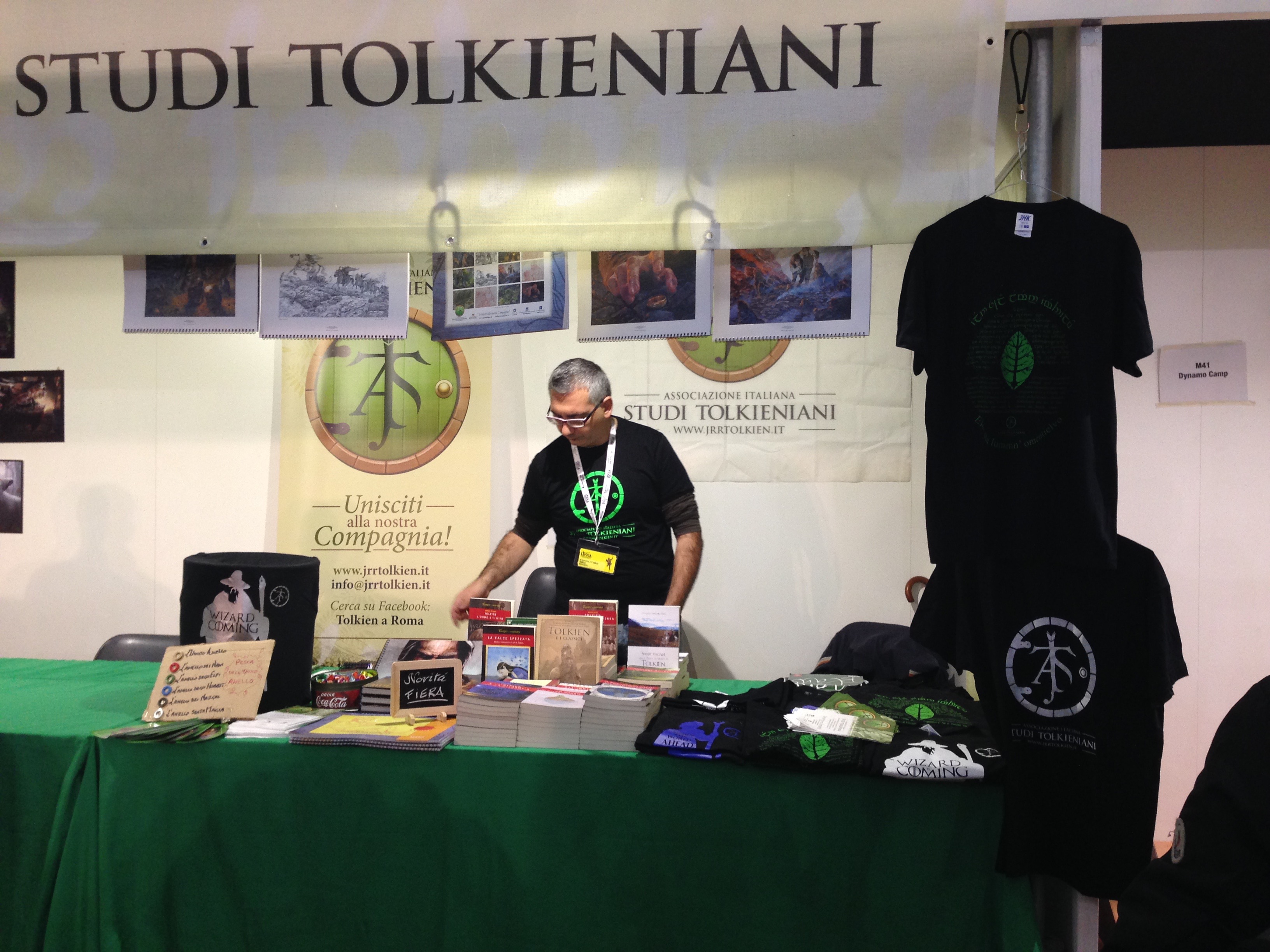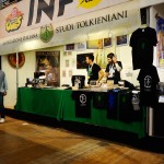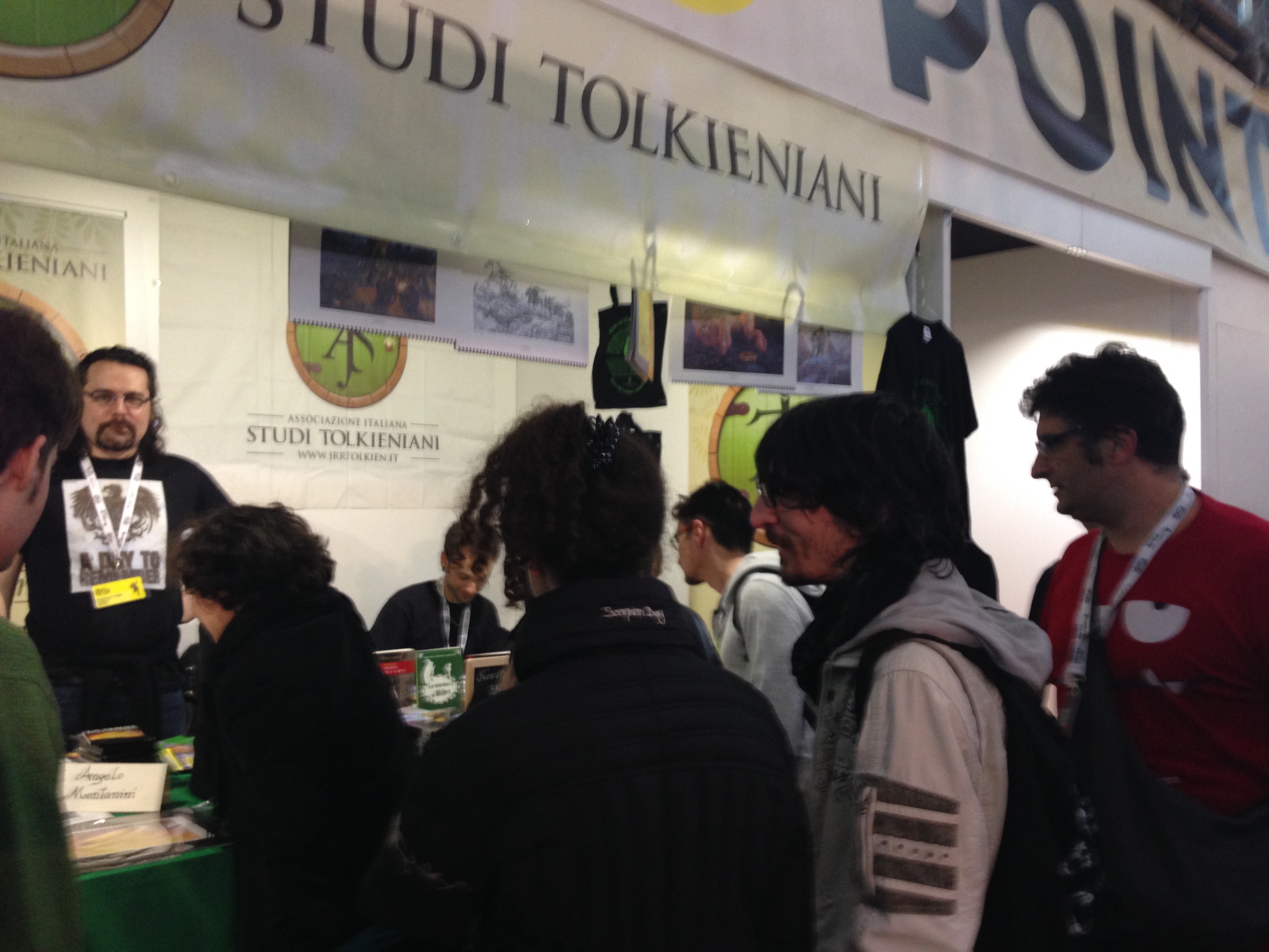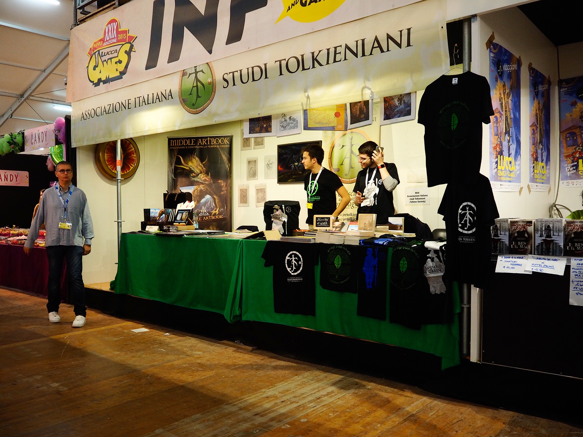 Se per gli amanti del Signore degli Anelli la fiera offriva tutte queste opportunità, il difficile è stato coglierle. Chi voleva un luogo sicuro in cui incontrare altri lettori di Tolkien e ricevere risposte da persone competenti, si è rivolto invece al nostro stand, all’interno del padiglione Carducci: uno stand rinnovato, raddoppiato e pieni di curiosità, libri di approfondimento e il nuovo calendario 2016, con le immagini tutte ad opera di Andrea Piparo, giovane talento cresciuto molto, anche dal punto di vista artistico, negli ultimi mesi. Un porto sicuro, visibile anche da lontano, in quel mare in burrasca che è stato il padiglione Games soprattutto nel fine settimana.
