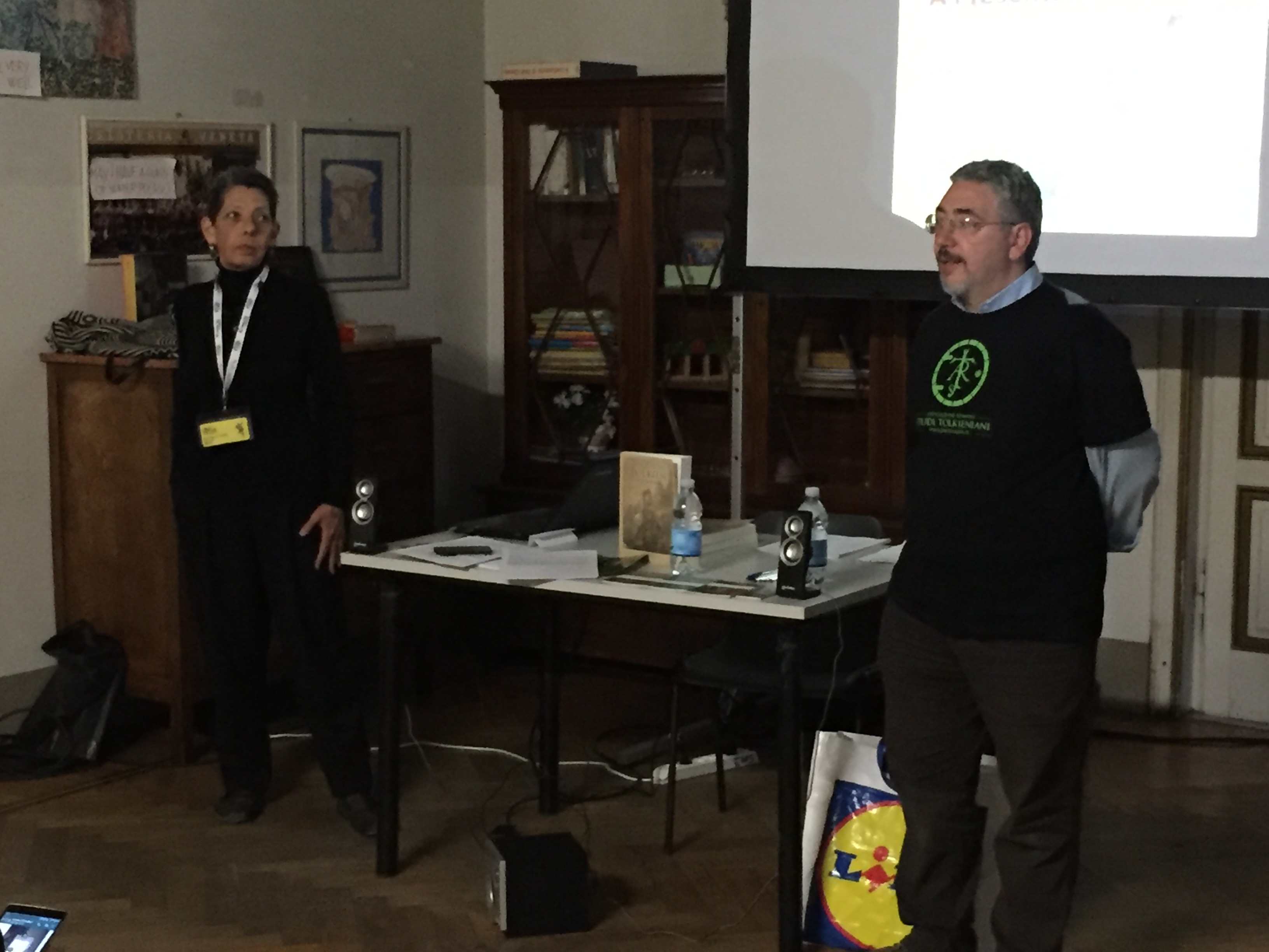 e un’analisi delle opere d’arte così profonda su aspetti e tecniche, che raramente si era sentita in Italia. Il dibattito che ne è seguito lascerà sicuramente il segno nei presenti. È stato un bel modo di passare il pomeriggio dell’ultimo giorno di fiera, insieme ad altri appassionati tolkieniani parlando di arte contemporanea. Perché Tolkien è anche questo e la nostra associazione non si stanca mai di aprire nuove strade in una passione comune.