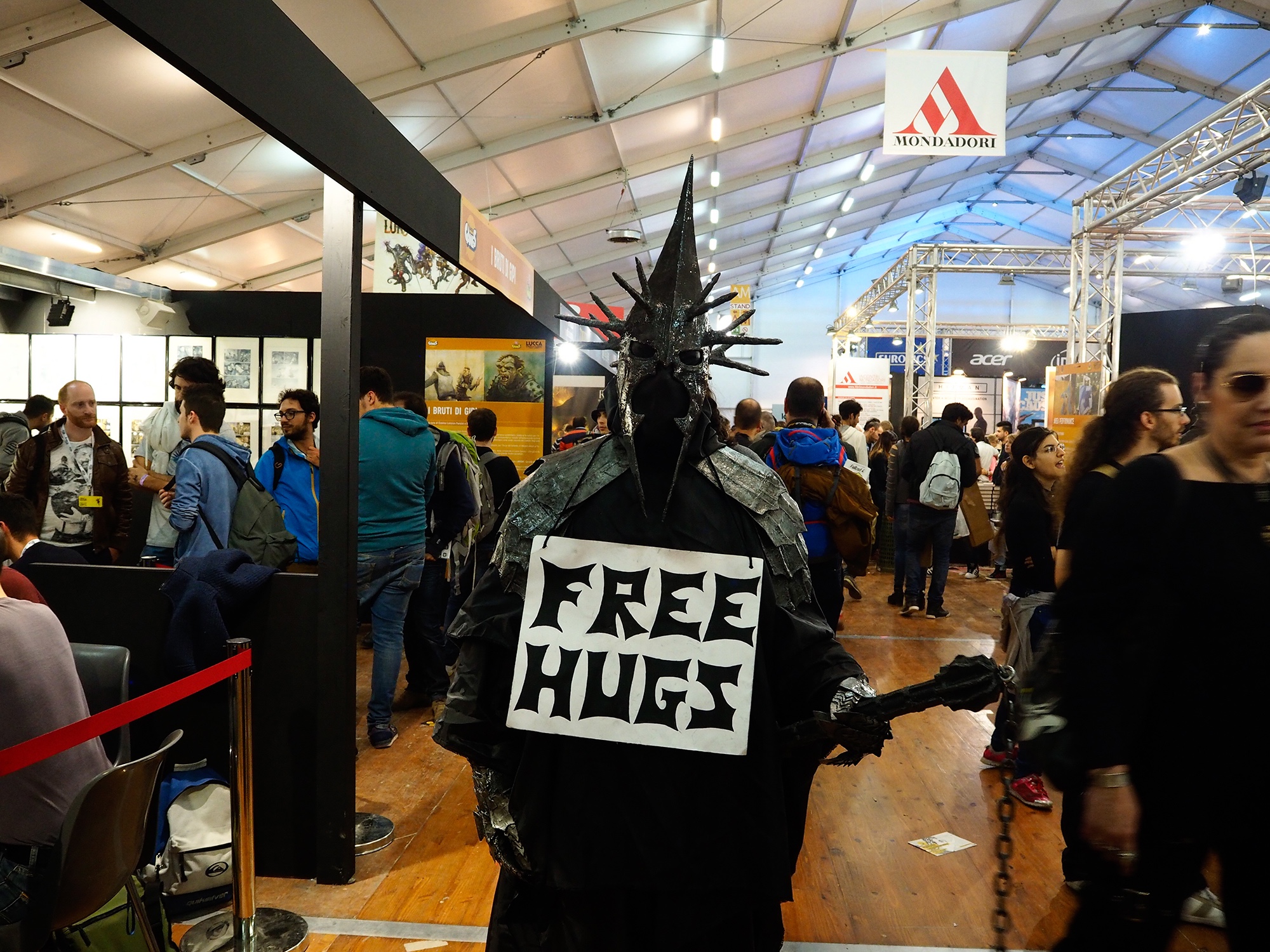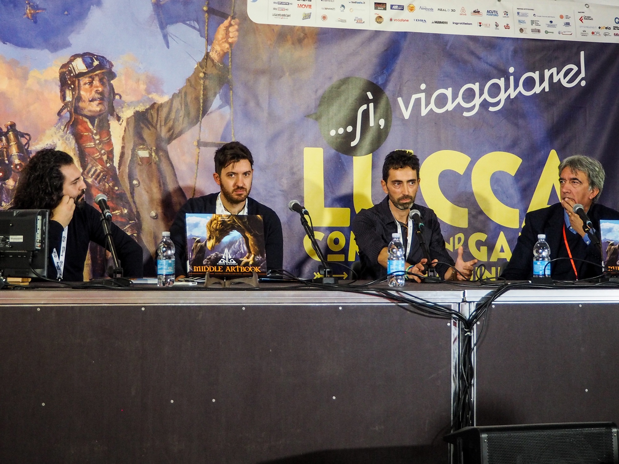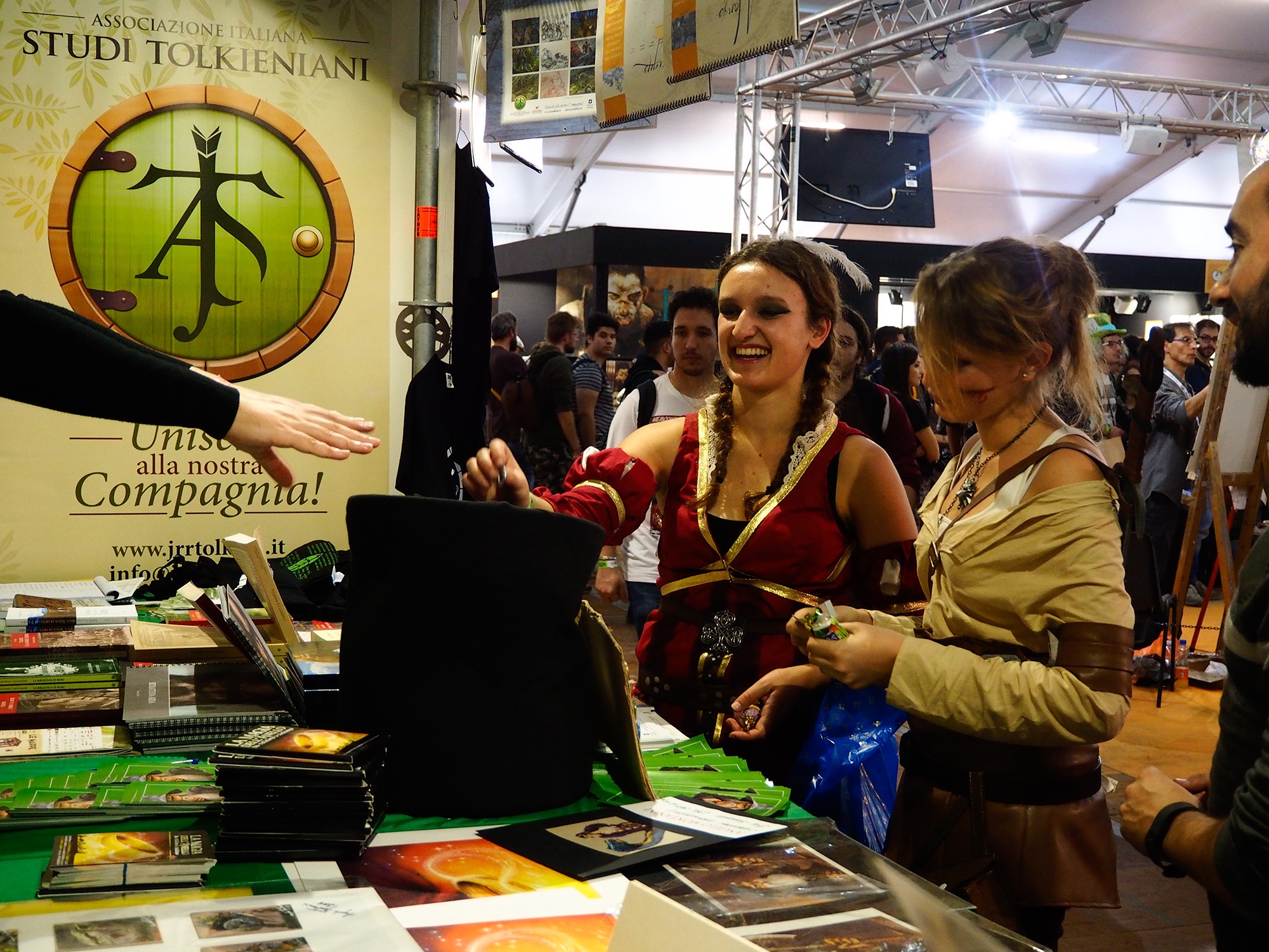La passione per le opere del professore di Oxford corre veloce da uno stand all’altro e sono stati molti i momenti in cui Tolkien è stato citato od omaggiato. L’evento più grande è stato naturalmente Voci di Mezzo, sabato 31 ottobre alle 21:30 al Teatro del Giglio, emozionante spettacolo che unisce musica, cinema e letteratura fantastica: i doppiatori italiani de Lo Hobbit e Il Signore degli Anelli, insieme a quelli dei film di Harry Potter, Hunger Games e Il Trono di Spade, hanno fatto rivivere le scene e le atmosfere di quei capolavori che hanno incantato milioni di persone in tutto il mondo. Per le scene ambientate nella Terra di Mezzo, erano presenti Fabrizio Vidale (Bilbo Baggins), Francesco Vairano (Gollum) e Edoardo Stoppacciaro (il nano Ori).