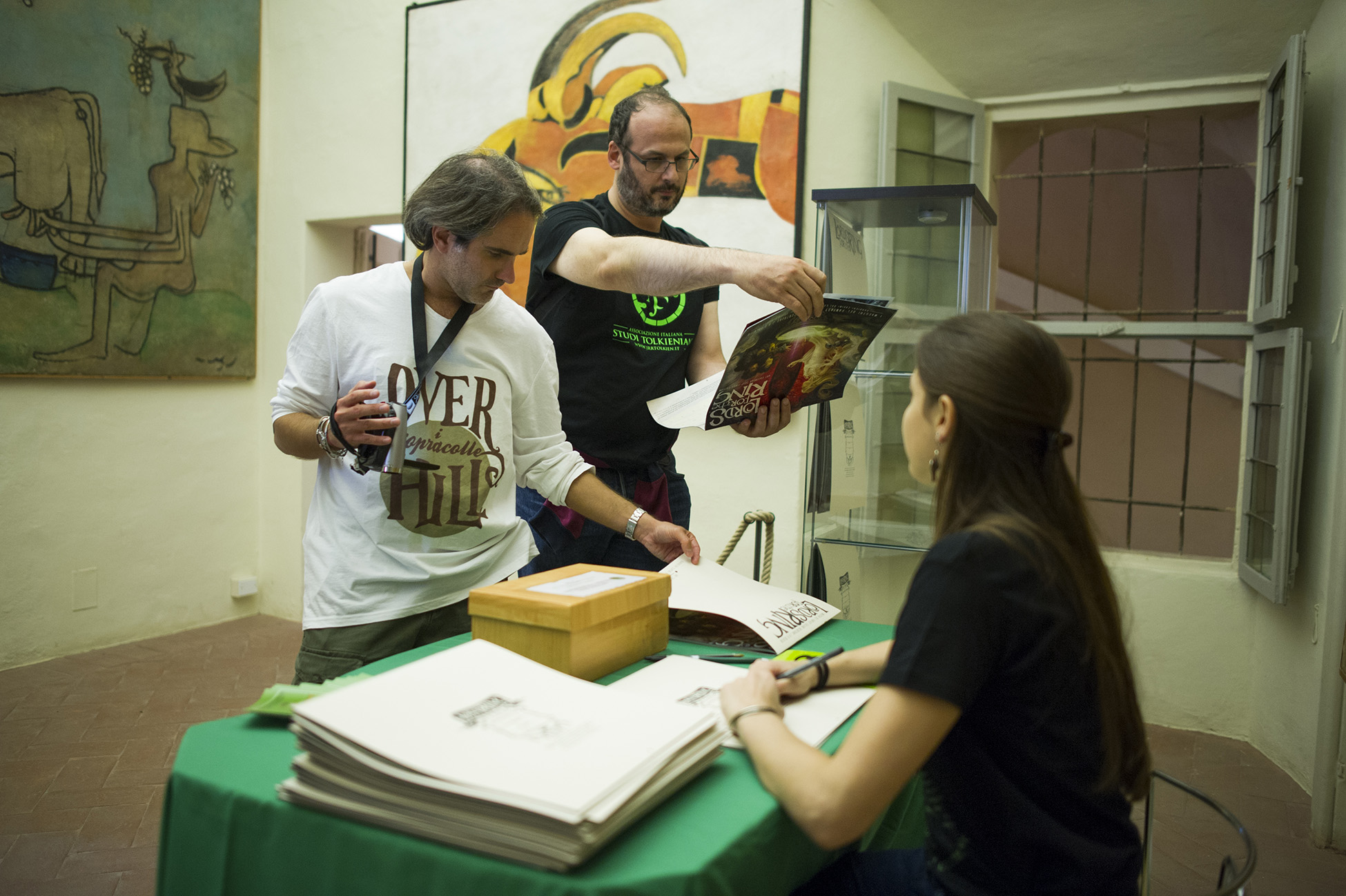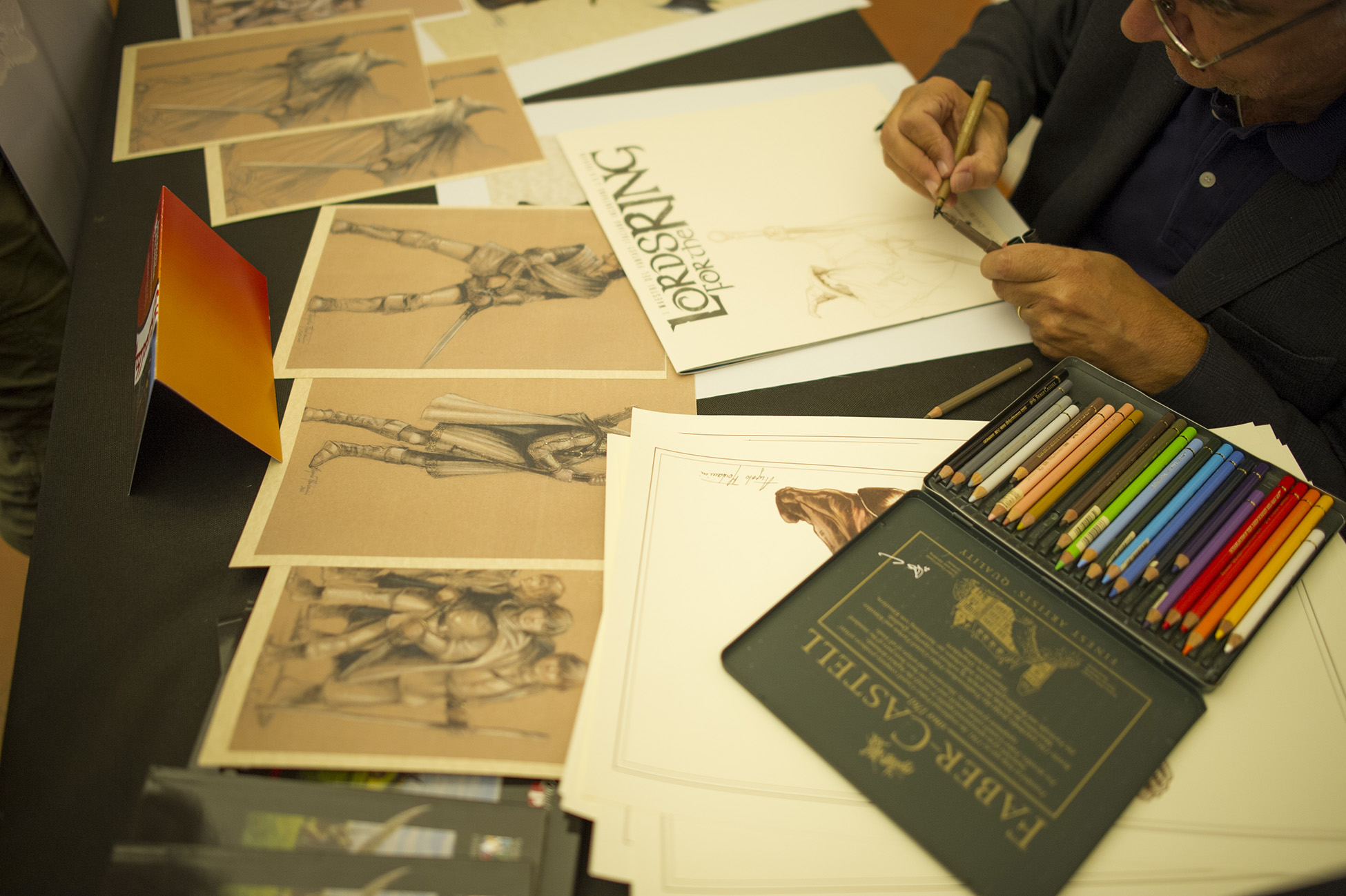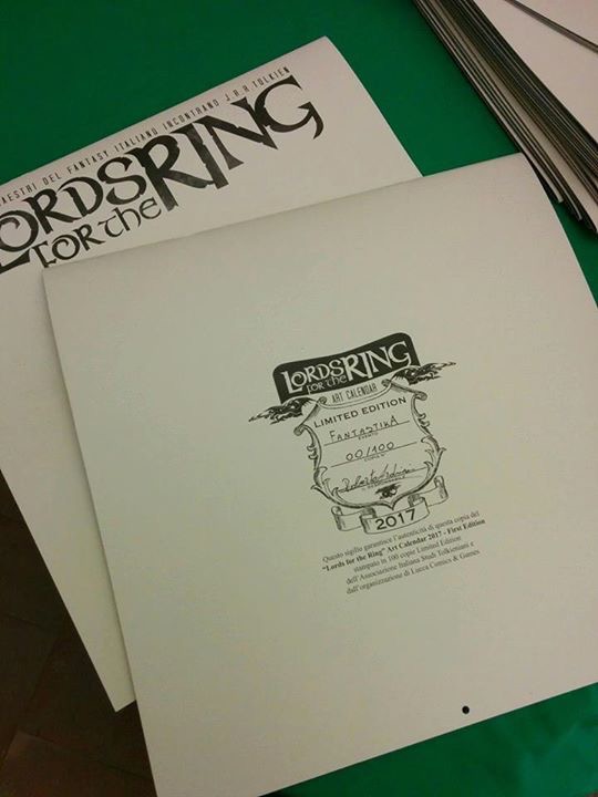 calendario Lords for the Ring, un’anteprima in vista della presentazione ufficiale a Lucca Comics & Games, che in questa speciale occasione era in vendita in edizione limitata con sovracopertina su cui era possibile avere uno sketch dagli stessi artisti che lo hanno realizzato. Questa perla per collezionisti ha riscosso un enorme successo ed è andata esaurita, ma non è stata la sola attrazione per gli amanti delle rarità: la mostra di libri e lettere “Tolkien inedito: l’uomo, lo scrittore, il professore”, il Mathom cioè l’asta dei collezionisti libri a cura di Tolkieniano Collection, la mostra di abiti e il matrimonio elfico curati da Eldalie.