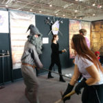 che pur reduci da FantastikA, non si sono risparmiati e hanno contribuito alla riuscita anche di quest’impresa, con la consueta disponibilità e l’amicizia che regna sovrana in tutte le nostre iniziative. Anche se lo spazio allo stand era minore rispetto all’anno scorso, alla fine grazie alla collaborazione tra associazioni tutto è andato per il meglio, e siamo riusciti a offrire ai visitatori una bella esperienza: anche solo visivamente, cosa meglio di spade e spadaccini potrebbe accostarsi a libri, costumi e disegni tolkieniani?