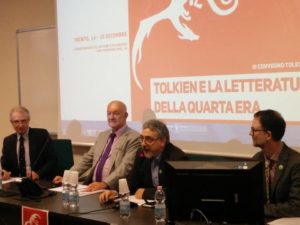 Il convegno è stato poi concluso da Fulvio Ferrari con Tolkien al crocevia del fantasy dove sono stati analizzati alcuni autori precedenti a Tolkien come il già citato Morris, MacDonald, Eddison o Howard per capire la relazione del Professore con i suoi predecessori e contemporanei. Ferrari infine ha esposto la teoria secondo la quale Tolkien sarebbe un catalizzatore del genere fantasy, grazie al quale è stato possibile distinguerlo dalla fantascienza. Attraverso l’opera del Professore oxoniense il genere fantasy ha ottenuto una sua dignità letteraria, dove prima era giudicato solo genere di mero svago.