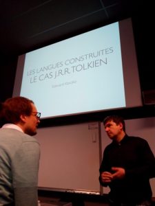 Il pomeriggio di martedì 13 marzo ha avuto luogo la conferenza Les Langues Construites: le cas J. R. R Tolkien, ovvero Le lingue costruite: il caso J. R. R. Tolkien, presso la Salle Henri Pousseur (Complexe Opéra) dell’università. Prima ancora che la lezione avesse inizio la sala era già quasi completamente occupata da studenti, a riconferma dell’interesse che suscita la figura del Professore in quanto creatore di lingue. Ad introdurre argomento e relatore è stato il professor Björn-Olav Dozo, all’interno del cui corso “Genres paralittéraires” (che riguarda particolarmente la letteratura dell’immaginario) si è tenuto l’intervento di Édouard Kloczko.