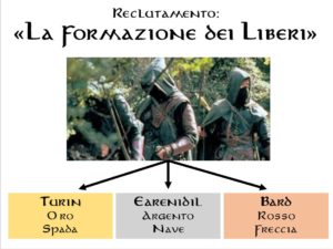 «Il progetto “Le Nere Lame” utilizza come ambientazione fantastica di riferimento il mondo creato da J.R.R. Tolkien. Il background di riferimento è molto accurato ma per partecipare non è necessario conoscere Tolkien e le sue opere. Ciascun partecipante viene introdotto per quanto serve a partecipare al LabGDR. L’ambientazione tolkieniana viene usata non solo per scegliere nomi, classi dei personaggi e sfondo narrativo nel quale avviene il gioco, ma anche per attingere e ricrearne l’ambiente valoriale dove sono presenti temi centrali in educazione come la distinzione tra bene e male, la libertà, il valore del coraggio e dell’epica, il senso del sacrificio e la compassione, l’importanza dell’amicizia e della “Compagnia”, la responsabilità individuale in relazione alle esigenze dei tempi, la necessità di opporsi e combattere il Male, il pericolo dell’Ombra che incombe su ciascun uomo. La capacità delle storie di Tokien di trasmettere valori ha trovato per me recentemente una piacevolissima conferma: ho chiesto ai miei figli di scrivere sul libro un pensiero, una volta giunti al termine della lettura serale del Signore degli Anelli. “questo libro mi insegnato che anche i piccoli e quelli meno prevedibili possono fare cose essenziali” “questo libro mi ha insegnato che gli amici migliori come Frodo e Sam riescono a superare la voglia di potere” fino al definitivo “mi è piaciuto il signore degli anelli e la compagnia dell’anello”. Tra qualche anno sfogliare il libro e trovare i loro pensieri sarà un regalo. Personalmente, se avessi dovuto scrivere anche io un pensiero al termine di questa lettura, sono rimasto particolarmente colpito dalla profondità antropologica che emerge dalla narrazione del Professore, quando ad esempio narra della caduta di Numenor, causata dalla paura della morte che spinge l’uomo a ricorrere a difese arcaiche fino ad arrivare ai deliri di onnipotenza che lo portano alla rovina, oppure proprio in questa lettura mi ha particolarmente affascinato quanto avviene nelle Case di Guarigione, dove tra morte e devastazione, l’approccio del Re le cui mani sono di guaritore, è un approccio alla persona “olistico”, tiene conto delle ferite fisiche, di quelle relazionali e transgenerazionali, di quelle spirituali riuscendo a sanare anche quando le risorse sembrano esaurite, e il destino segnato. Estel, nome che viene dato ad Aragorn e che vuol dire Speranza, riesce a ravvivare e ad avere “cura” anche dove altri non riescono più e in modo totale. E l’approccio psicoterapeutico è sempre un approccio olistico laddove una persona non può essere parcellizzata o diagnosticata quando chiede di essere accolta primariamente.