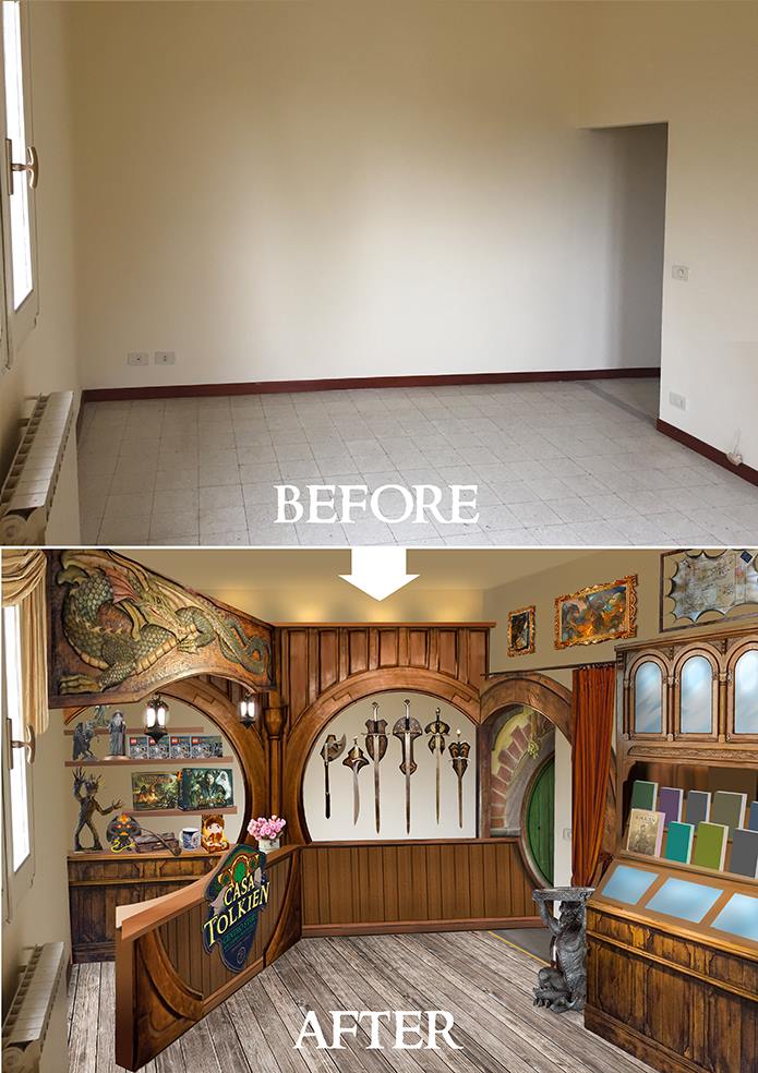 - 15.000 euro: il bookshop apre – mobili e pannelli in legno in stile Hobbit/fantasy
