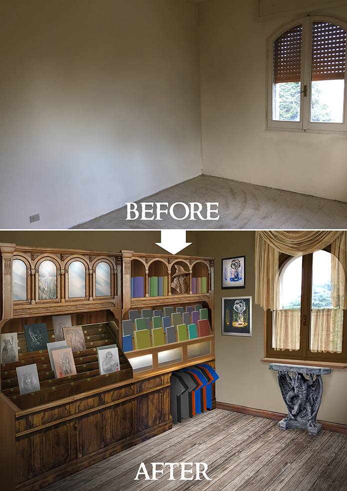 - 8000 euro: il bookshop apre – bancone del bookshop, accessori in stile Hobbit/fantasy