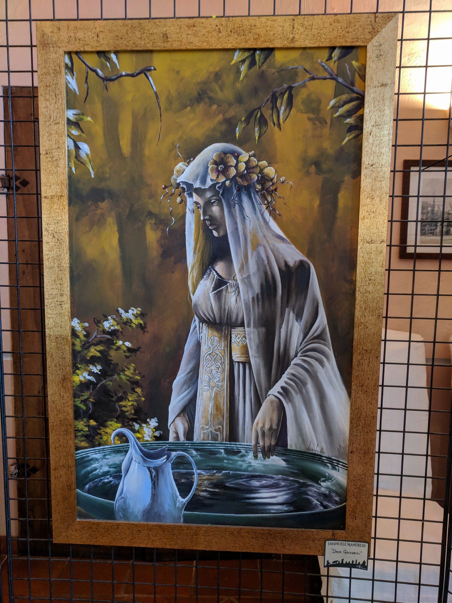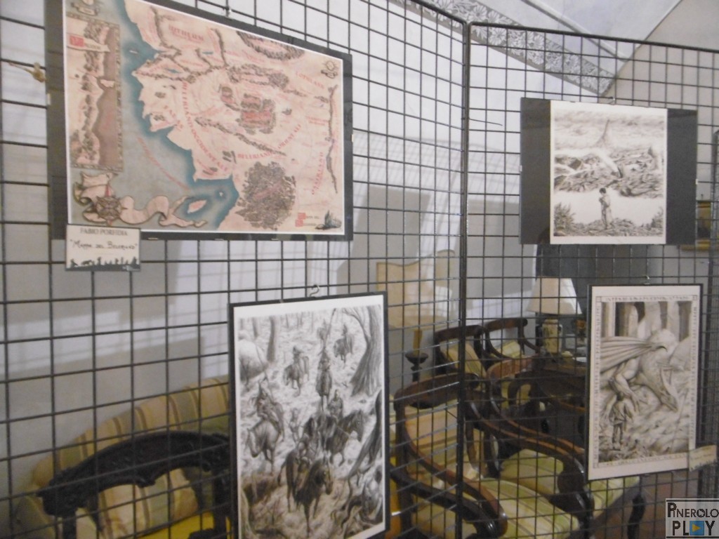 Chiudeva l’enorme giardino, aldilà di tutto questo, l’area medievale (Breccia di Rohan): è stato il luogo in cui i molti gruppi e associazioni di rievocazione storica hanno allestito i propri campi medievali cimentandosi nella scherma medievale, tiro con l’arco, antichi mestieri, vedendo da vicino rapaci e cavalli grazie ai falconieri e ai cavalieri presenti. Per la prima volta, Sentieri Tolkieniani ha occupato alcune sale del Castello di Osasco per una mostra a tema fantasy-tolkieniano (la Sala del Palantír), il tutto curato dal nostro illustratore Emanuele Manfredi. Eran presenti le opere di ben sei autori, tra cui spiccavano di nomi di Fabio Porfidia e Lucia Simonis.