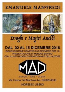 La mostra Draghi e Magici Anelli sarà allestita presso la galleria M.A.D, Mantova Arte Design, in via Cavour 59 a Mantova. L’esposizione sarà aperta al pubblico da domenica 2 a sabato 15 dicembre e l’ingresso sarà gratuito.