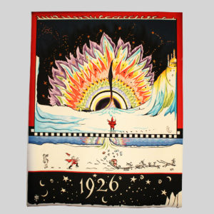 Gli artigiani di Aubusson si sono dedicati al progetto con abilità e grande costanza quest’ultimo anno; dopo l’esposizione del primo arazzo, Bilbo comes to the Huts of the Raft-Elves, nell’aprile 2018, è stata la volta di Halls of Manwë – Taniquetil e di Glórund sets forth to seek Túrin nell’ottobre dello stesso anno (abbiamo parlato del primo qui e del secondo e terzo qui). Il procedimento è sempre lo stesso: a partire dai disegni preparatori inizia poi la tessitura dei grandi arazzi, procedimento aperto al pubblico in tutta la sua durata; le opere terminate vengono infine issate dal basso per potersi finalmente svelare in tutta la loro magnificenza, ogni dettaglio finemente lavorato. Un compito che coinvolge la maggior parte degli artigiani di Aubusson, seguendo la particolare tecnica di tessitura della cittadina: una tecnica che è infatti patrimonio culturale immateriale UNESCO sin dal 2009, secondo la quale gli arazzi vengono realizzati sul rovescio degli stessi, utilizzando un telaio orizzontale e fili tinti a mano in proprio. Un lavoro lungo e preciso: la tessitura del quarto arazzo, Christmas 1926, ha richiesto ben tre mesi ed è stata attuata dall’Atelier Guillot, che firma così il proprio secondo pezzo nella serie, dopo aver dato vita a Glórund sets forth to seek Túrin.