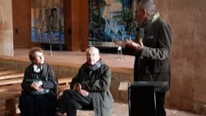 Parrebbe proprio che non ci sia nessun ritardo sulla serrata tabella di marcia impostata; e anche per celebrare il risultato finora ottenuto, a gennaio 2019 i quattro arazzi già ultimati sono stati esposti nella suggestiva cornice dell’Abbazia di Thoronet, la più antica abbazia cistercense in Provenza. Lì sono stati ammirati da un ospite d’eccezione: Christopher Tolkien, in visita il 19 gennaio in compagnia della moglie Baillie; i due hanno sempre seguito molto da vicino il progetto e l’anno passato Baillie Tolkien è stata presente al debutto ufficiale di tutti gli arazzi. Christopher ha così potuto rivivere in scala molto più grande (l’opera è infatti enorme, circa 2mx3m) i ricordi della sua primissima infanzia, rimirando l’aurora boreale che suo padre aveva dipinto ad acquarello nella lettera di Babbo Natale del 1926 riflessa nell’ultimo degli arazzi.