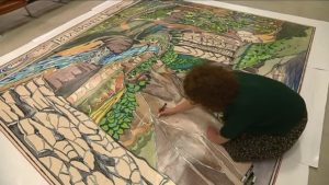 Procede spedito Aubusson tisse Tolkien, Aubusson tesse Tolkien: il progetto, annunciato agli inizi del 2017, vede la realizzazione di un ciclo di tredici arazzi e un tappeto raffiguranti alcune scene illustrate da J.R.R. Tolkien stesso, sia quelle pensate come accompagnamento al suo legendarium che quelle che furono poi pubblicate insieme alle lettere di Babbo Natale che scriveva per i suoi figli. Coinvolte nell’iniziativa, i cui primi germi risalivano già al 2012, sono la Cité internationale de la tapisserie della città francese di Aubusson e la Tolkien Estate; il monumentale obiettivo è di terminare i lavori entro il 2021, e pare proprio che si sia sulla buona strada – a dicembre 2018 è stato infatti esposto il quarto arazzo, Christmas 1926, il primo a tema natalizio dopo i tre dedicati alla Terra di Mezzo.