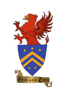 L’autore de Il Signore degli Anelli ha modo anche di descrivere lo stemma di famiglia: «Quest’ultimo è stato detto essere, o essere stato, uno scudo blu con due galloni dorati con cinque stelle dorate a cinque punte, tre sopra e due sotto. Sopra lo scudo un mezzo grifone. Non lo sto descrivendo nel linguaggio tecnico araldico perché i termini sono incerti (e in ogni caso secondo la terminologia tedesca). Questo stemma proviene dal timbro di un sigillo di mio padre. Il motto si dice essere stato “Fest und Treu” [“Fermo e Fedele”].