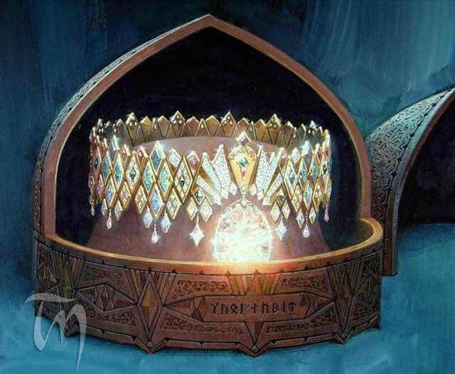 Nauglamír, la Collana dei Nani, una famosa collana in oro tempestato di gemme magnifiche di Valinor. Il gioiello fu forgiato per Finrod Felagund dai Nani di Nogrod e sembra che chiunque la indossasse apparisse ammantato da grazia e bellezza. Il conflitto si rinnova quando Thingol, ricevuto in dono la collana, decide di farvi montare sopra il Silmaril e questo portò alla fine alla morte di Thingol e Dior. Ne Lo Hobbit, c’è l’Arkenstone, il grande cristallo dal cuore della Montagna Solitaria, che è così bramato da Thorin Scudodiquercia che porta molte tensioni con Elfi e Uomini e alla fine porta alla Battaglia dei Cinque Eserciti.