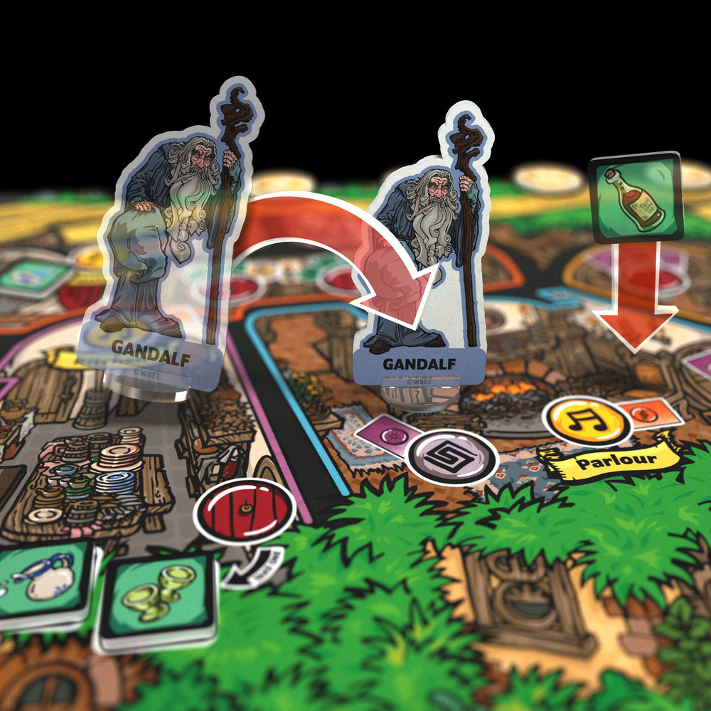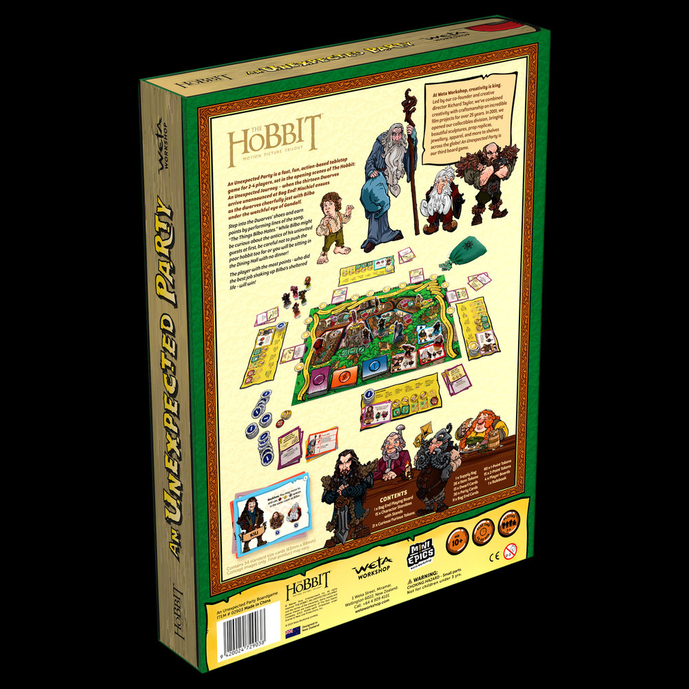 «Volevamo mostrare il lato scanzonato del mondo di Tolkien», ha riferito Daniel Falconer, , senior artist della Weta Workshop che ha lavorato ai film de Lo Hobbit «quei momenti comici, spensierati dove ti innamori dei personaggi mentre sono semplicemente se stessi, senza battaglie in vista. La festa estemporanea dei nani ne è il perfetto esempio!». Daniel ha cominciato a lavorare per la Weta Workshop nel 1996. Come impiegato esperto del mondo di Tolkien, è stato fondamentale nel progettare molti dei costumi più iconici, armi, oggetti di scena e personaggi visti nei film de Il Signore degli Anelli. Ha lavorato, oltre che per la trilogia de Lo Hobbit, anche a King Kong e Le Cronache di Narnia. Oltre al suo lavoro per il grande schermo, Daniel lavora come direttore artistico sugli oggetti da collezione e ha scritto numerosi libri per la Weta, tra i quali Le cronache de Lo Hobbit e della Terra di Mezzo: dalle pagine allo schermo. Gameplay nell’universo Tolkieniano e grafica originale, il gioco da tavolo è così uno sguardo dentro Casa Baggins da parte di uno degli artisti che ha lavorato ai film, essendo parte della Weta Workshop. Il game design è opera, invece, dei neozelandesi Ian Luxmoore e Jarratt Gray (gli stessi di Endeavor).