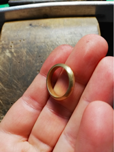 Ne Il Signore degli Anelli troviamo molte descrizioni riguardanti l’Anello. Sappiamo ad esempio che era un anello d’oro, “Durante il discorso aveva giocherellato con l’anello d’oro nascosto in tasca: il suo magico anello”41, che “era liscio e uniforme”42, “tondo e disadorno”43, che era un anello di un certo valore qualitativo, “L’oro sembrava molto bello e puro, e Frodo ammirò la ricchezza e lo splendore del colore, la perfezione della forma. Era un oggetto straordinario e di altissimo pregio”44, “È del tutto liscio e non troverai né un graffio né un punto logoro”45, ed inoltre era piuttosto spesso rispetto ad un anello comune, “L’anello sembrava più spesso e pesante che mai”46. Inoltre l’Anello “non aveva sempre le stesse dimensioni e lo stesso peso. Si rimpiccioliva e si espandeva in maniera curiosa, e a volte scivolava all’improvviso da un dito al quale poc’anzi aveva stretto47”. Quando viene tramandato un anello, è possibile allargarlo o stringerlo a seconda del dito del futuro portatore. Per allargarlo si apre l’anello, tagliandolo in un punto per tutta la sua larghezza e inserendo un pezzetto della stessa lega48 in mezzo all’apertura. Questo viene successivamente saldato, e l’anello viene rimesso a misura e pulito. Per stringerlo viene tolto un pezzetto e l’anello viene risaldato. La pulitura che segue è magica. Attraverso l’utilizzo di carte abrasive e di spazzole si riesce a far scomparire il segno della saldatura. Solo un occhio attento può notare il segno dell’apertura precedente. Un anello che abbia vissuto a lungo avrà visto numerosi rimaneggiamenti, e la sua storia è visibile anche attraverso questi segni.