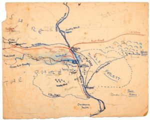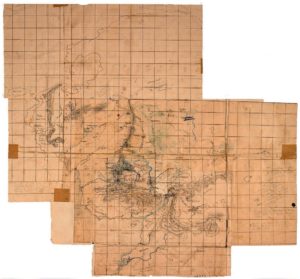 Si tratta, tutto sommato, della maggior parte delle regioni in cui si svolgono gli eventi de Le Due Torri e Il Ritorno del Re. Tolkien usò mappe come questa per calcolare le posizioni esatte di Frodo e Sam mentre camminavano attraverso gli Emyn Muil e le Paludi morte per giungere fino al Monte Fato. È grazie a mappe simili che il loro arrivo coincide con le trame parallele di altri membri della Compagnia dell’Anello. Nella mostra alla Bnf di Parigi, che si è chiusa lo scorso febbraio, erano visibili ben tre esemplari originali della Mappa di Rohan, Gondor, Mordor: quella del 1946 circa (Bodleian – Tolkien Drawings 123), quella del 1948 circa (Bodleian – Tolkien Drawings 126) e quella del 1944 con note per il libro V (Bodleian – Tolkien Drawings 118-119) che è appunto la prima parte de Il Ritorno del Re.