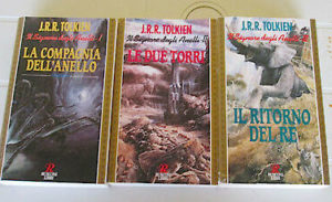 Dal 1970 a oggi, si sono alternane ben 14 edizioni in tre volumi de Il Signore degli Anelli (qui un approfondimento). In generale, si può dire che l’edizione del capolavoro di Tolkien in tre volumi in Italia è sempre stata considerata dai suoi stessi editori una operazione da fare in economia per quei lettori «deboli»: i non appassionati di Tolkien che volevano saperne di più, quelli a cui il volume unico spaventava per le sue 1500 pagine, quelli che volevano tentare la lettura pronti però a interromperla se non di loro gradimento e, infine, per chi non voleva o non poteva spendere troppi soldi tutti insieme. Ecco perché l’edizione in tre volumi è sempre stata quella economica, con copertina in brossura, senza mappe e a un prezzo contenuto.