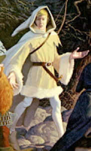 Nel dipinto della Compagnia di Pauline Baynes, realizzato mentre Tolkien era ancora vivo, Legolas è l’unico a portare un cappuccio che gli nasconde i capelli. Questa illustrazione non è un riferimento assoluto, ma probabilmente il motivo per nascondere questo personaggio era stata proprio l’assenza di una descrizione dei capelli di Legolas.