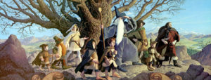 Cercai di capire dove fossero le loro cartelle con le opere, ma niente, a terra c’erano solo due bustoni verdi da spazzatura, che sembravano dimenticati lì dal personale di pulizia. Tim e Greg Hildebrandt dissero insieme: “Hey signore, immagini di Tolkien, le facciamo noi” – e dalle buste verdi rovesciarono sul pavimento dell’ingresso pergamene arrotolate, disegnate in modo meraviglioso con immagini tolkieniane. Rimasi a bocca aperta, avevo trovato gli artisti che cercavo per creare nuovi Tolkien Calendars. Di lì ad una settimana, firmammo il loro incarico, che gli commissionava quattordici dipinti originali per il calendario 1976».