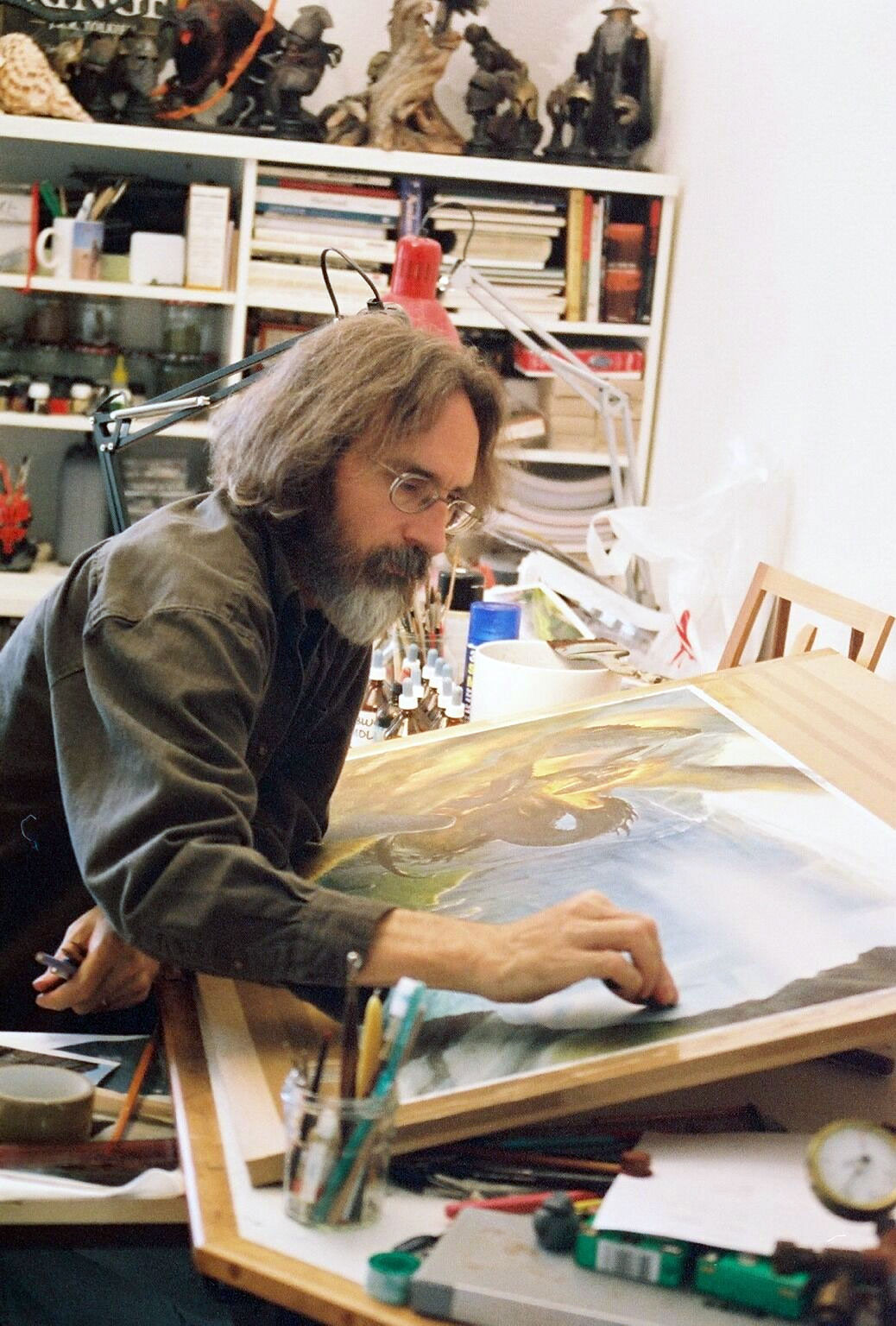 «Uso un po’ di software nelle prime fasi, in modo da provare le variazioni di tono e fare esperimenti, per lo più. Non mi sono mai davvero interessato alla creazione di opere completamente in digitale. Il mio strumento principale per i dipinti continua a essere la tempera, per quanto i lavori per Il Trono di Spade (edizione deluxe da collezione) mi abbiano riportato alle matite, in particolar modo all’uso della grafite su carta grigia risaltata da punti di luce bianchi».