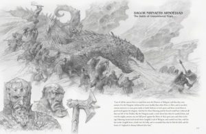 «Ci sono sei illustrazioni a colori all’interno e una per la copertina, inclusa come stampa nell’edizione deluxe. Ho anche lavorato a tre piccole vignette a matita. Una delle illustrazioni nel libro è stata fatta per I Figli di Hurin nel 2007, ma non era mai stata usata».