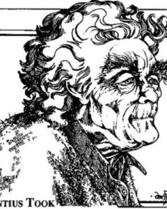 Fatica ha pure preso una cantonata, va detto, attribuendo la parentela del Vecchio Geronzio a Barbalbero (anziché a Pippin), ma sulla ridondanza onomastica ha ancora colto nel segno: Geronzio è nome greco-latino, in questo caso nome proprio di persona, che significa “Vecchio”. Se nella finzione narrativa i nomi hobbit sono tradotti in inglese, il significato del suo nome originario reso dal fantomatico traduttore con l’anglo-latino “Old Gerontius” quale doveva essere? “Vecchio Vecchietto”? “Vecchio Vetusto”? Ma del resto, compare un hobbit di nome Sancho, come il celebre scudiero di Don Chisciotte. A volte per Tolkien la voglia di giocare con i nomi era più forte delle esigenze di plausibilità.