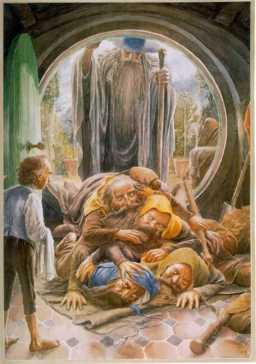 Per lo Hobbit, invece, Alan Lee decise di “zoomare” sui protagonisti della storia, anche perché convinto che fino ad allora (1997), non c’erano in giro ritratti convincenti degli Hobbit.