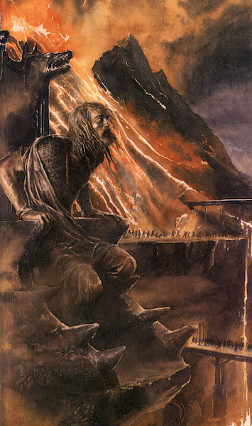 Notevole per il suo pathos l’illustrazione di marzo 2008 dal titolo The Words of Húrin and Morgoth, in cui appare in primo piano Húrin sul trono di pietra sul Thangorodrim a cui rimase incatenato dalla maledizione di Morgoth per ventotto anni. La tensione sul volto di Húrin e la lava sullo sfondo caratterizzano l’opera. La sua storia è centrale nelle vicende de Il Silmarillion: il fratello Huor muore nella Nírnaeth Arnoediad, l’ultima delle cinque grandi battaglie delle Guerre del Beleriand e che si conclude con una disastrosa sconfitta per elfi e uomini. Húrin, invece, fu catturato vivo perché l’unico a conoscere l’ubicazione di Gondolin. Quando il guerriero si rifiutò di rivelargliela, Morgoth gettò su di lui una micidiale maledizione «[…] una sorta di tenebra e dolore […]» su tutta la casata di Húrin. La vicende è all’origine de I Figli di Húrin, appunto.
