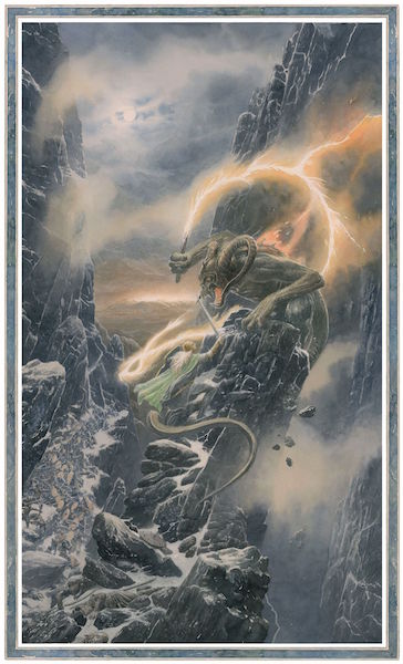 Per il Tolkien Calendar 2019 la casa editrice HarperCollins fa una selezione dalle illustrazione con cui Alan Lee aveva completato il volume La Caduta di Gondolin (2018). L’immagine selezionata è quella di dicembre 2019: Glorfindel and the Balrog, che mostra il combattimento dell’eroe Noldor a Gondolin contro il suo terribile nemico: un Balrog dell’armata di Morgoth. È un altro dei momenti più epici de Il Silmarillion. L’assedio della città ha portato ormai gli Elfi a cedere le mura per tentare un’ultima disperata difesa nella città. Nello scontro tra il principe Elfo e il Signore dei Balrog, Glorfindel riesce ad avere la meglio, ma ormai ferito si sacrifica accompagnandolo nell’abisso e morendo con lui.