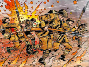 Sembra ormai un dato consolidato che gli anni dell’università e della Prima Guerra Mondiale siano stati fondamentali nella vita di Tolkien. In realtà, furono determinanti non solo per l’autore, ma per tutta la sua generazione e uno dei pregi di questa graphic novel è proprio quello di mostrare molto bene il contesto sociale e culturale in cui l’autore si trovò a vivere. Il meticoloso lavoro è descritto nell’appendice, ma è già visibile nelle vignette dettagliate e nei particolari che ricostruiscono la Oxford dell’epoca e il fronte francese. Il cuore del racconto è i TCBS (qui però chiamato TCSB), cioè «Tea Club, Società Barroviana», il gruppo letterario dei tempi del college, i cui membri morirono quasi tutti nel conflitto bellico. L’amicizia dei membri di questo gruppo è descritta bene, quasi al punto di far passare per scontata la storia d’amore di Tolkien con Edith Bratt, che poi diverrà sua moglie. Eppure, la relazione è uno dei pilastri nella vicenda e durerà tutta la vita dello scrittore.