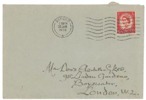Tra Tolkien e la destinataria della lettera, in realtà, ci fu una corrispondenza. Era il 5 gennaio 1956 quando l’artista Doris Elizabeth Sykes inviò i suoi disegni allo scrittore inglese sperando che fossero utilizzati per una edizione illustrata de Il Signore degli Anelli. Tolkien rispose dicendo che trovava i disegni «estremamente buoni… A parte la loro abilità tecnica… non solo in molti casi corrispondono alla mia visione soggettiva, ma addirittura la arricchiscono. Sono stato particolarmente felice di Barbalbero con Merry e Pipino tra le braccia; ma tutti i suoi Hobbit sono ammirevoli, e anche gli Orchi e Gimli. Ho anche pensato che la scena sotto Svettavento con il Re Stregone fosse potente. È stato affrontato nell’unico modo possibile: rendendo visibili Frodo e il Re e gli altri Nazgûl… solo Aragorn non si avvicina alla mia visione… Me lo immagino più austero, più acuto e con una faccia meno “greca” e col naso dritto, più romano». Tolkien aggiunse con rammarico, tuttavia, che «le prospettive immediate di un’edizione illustrata non sono buone». La corrispondenza tra i due continuò, anche se non sappiamo cosa si scrissero: tutto è confermato da una busta da lettera datata al 30 gennaio 1956, che è andata separatamente all’asta nel 2014 (e altre volte successive qui e qui e qui). All’inizio di luglio 1956 Tolkien scrisse di nuovo a Doris Elizabeth Sykes che gli aveva inviato una seconda serie di disegni basati su Il Signore degli Anelli.