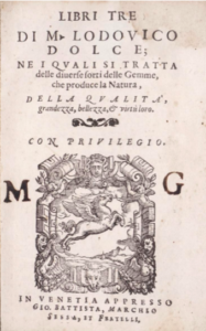 - Da Libri Tre, Lodovico Dolce, Libro II, pag: 28, Gio. Battista, Marchio Sessa, et Fratelli, Venezia, 1565