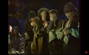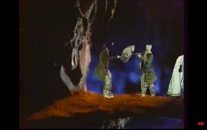 Le due parti in cui è diviso il film tv coprono solo il primo volume de Il Signore degli Anelli. La prima parte va da Una festa a lungo attesa fino a Nebbia sui Poggitumuli, mentre la seconda parte parte da quel capitolo per giungere fino allo scioglimento della Compagnia. La versione sovietica include alcuni elementi della trama, inclusa un’apparizione del personaggio Tom Bombadil e dello Spettro dei Tumuli, personaggio tagliato fuori dalla versione di Jackson. Alcune delle scelte stilistiche sono un po’ strane: Aragorn è molto giovane, ha una cicatrice sulla guancia, ma non sembra che abbia davvero vissuto in mezzo a boschi; Legolas è interpretato da una donna; i piedi pelosi degli Hobbit sono rappresentati da soffici stivali alti fino al ginocchio; la scontro tra Gandalf e il Balrog non viene mostrato perché non c’era il budget per realizzare la creatura mostruosa, quindi non si vede Gandalf cadere a Moria, ma soltanto la Compagnia che scoppia in lacrime; gli sceneggiatori sovietici adottano la pratica di avere un narratore onnisciente e così appare un tizio barbuto che fuma la pipa con gli occhiali e una coda di cavallo che narra gli eventi con l’espediente di ricordarli.