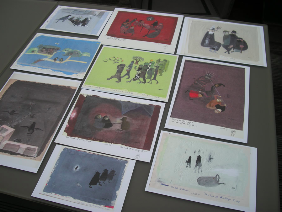 (due più un’altra che gli venne regalate dallo stesso artista). La sorte degli altri quadri però è molto complessa: anche se nel 1965 uscirono in Olanda i tre volumi che compongono Il Signore degli Anelli con le copertine di Blok, l’artista non era riuscito a vendere tutti i dipinti. Frustrato, Blok ne distrusse alcuni e altri li mise in vendita. Per 30 anni Blok non si occupò più dei quadri, che furono “riscoperti” nel 1992, quando circa 20 sono stati inclusi nella mostra del Centenario di Tolkien all’Aja. In quell’occasione, alcuni dipinti vennero venduti senza che ne venisse conservata alcuna immagine, perciò risultano ancora perduti. Poi più nulla fino all’estate del 2005, quando Blok tenne una mostra delle sue opere per le celebrazioni del Lustrum di Unquendor, dove era ospite d’onore. La relazione di Blok («Immagini per accompagnare una grande storia») compare anche negli Atti della manifestazione, pubblicati nel 2008. Nel 2011, sotto la guida di Pieter Collier, webmaster del sito web Tolkienlibrary,