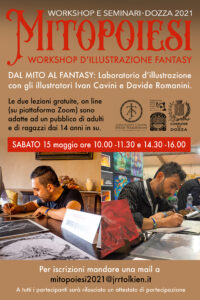 Sabato 15 maggio (ore 10.00-11.30 e 14.30-16.00) si terrà on line un laboratorio d’illustrazione teorico e pratico per adulti e ragazzi dai 14 anni. L’evento, gratuito e su prenotazione, sarà condotto da due illustratori d’eccezione: Ivan Cavini e Davide Romanini. Ivan Cavini, artista specializzato nella curatela di progetti artistico-culturali, è un illustratore e set designer. Ha illustrato tre edizioni dell’art calendar Lords for the ring (di cui una monografica), e collabora con numerosi editori (Rainbow SpA, Tabula Games, Rcs libri, Sergio Bonelli editore, Franco Panini ragazzi, Saf Comics, Walt Disney, Delos Book, Fanucci, Eterea Edizioni e molti altri). Direttore creativo del Greisinger Museum in Svizzera, in cui si può ammirare la più grande collezione al mondo di opere e oggetti legati al mondo tolkieniano, è direttore artistico della biennale d’illustrazione FantastikA di Dozza e responsabile del Centro Studi Tolkieniani “La Tana del drago”. Davide Romanini dal 2016 è illustratore per la casa editrice Eclypsed Word