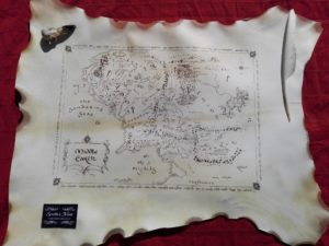 Come è stato realizzare la Mappa della Terra di Mezzo? «Ricordo con una precisione, proprio come se fosse successo ieri, il giorno di dicembre 2016 in cui avevo davanti quella intera pergamena di vitello che sarebbe diventata la mia prima mappa della Terra di Mezzo ed il giorno di gennaio 2017 in cui ho tracciato l’ultimo tratto. Ricordo le sensazioni che ho provato prima e che ho provato poi. Prima c’era un senso di panico completo, totale, assoluto. Cioè avevo di fronte questa pergamena e avevo di fronte la mappa che avrei dovuto copiare e la sensazione era: “Come ne tiro fuori le gambe? È un lavoro troppo grande per me. Troppo complesso”. Ci sono infinite scrittine poi piccole minute, una quantità di dettagli che, insomma, chi conosce l’argomento lo ben sa. E la sensazione una volta finito il lavoro, quando ho tirato l’ultimo tratto di penna non era solo orgoglio…, lì, si, è stato il momento in cui mi si è aperto un mondo, in cui mi si è sbloccata la consapevolezza che il tetto era solo la volta stellata, che se avessi dedicato sufficiente attenzione, delizione, tempo e risorse ad un progetto, non c’era nulla così grande da risultare veramente inaffrontabile! Quella mappa è stato alla fin fine ciò che mi rende quello che sono oggi e quindi per me oggi pensare a Tolkien è divenuto una sensazione davvero agrodolce. Si unisce l’amore che non riesco a non provare per la sua opera, con la sensazione acre di tutto quello che è successo e che vi ho appena raccontato.
