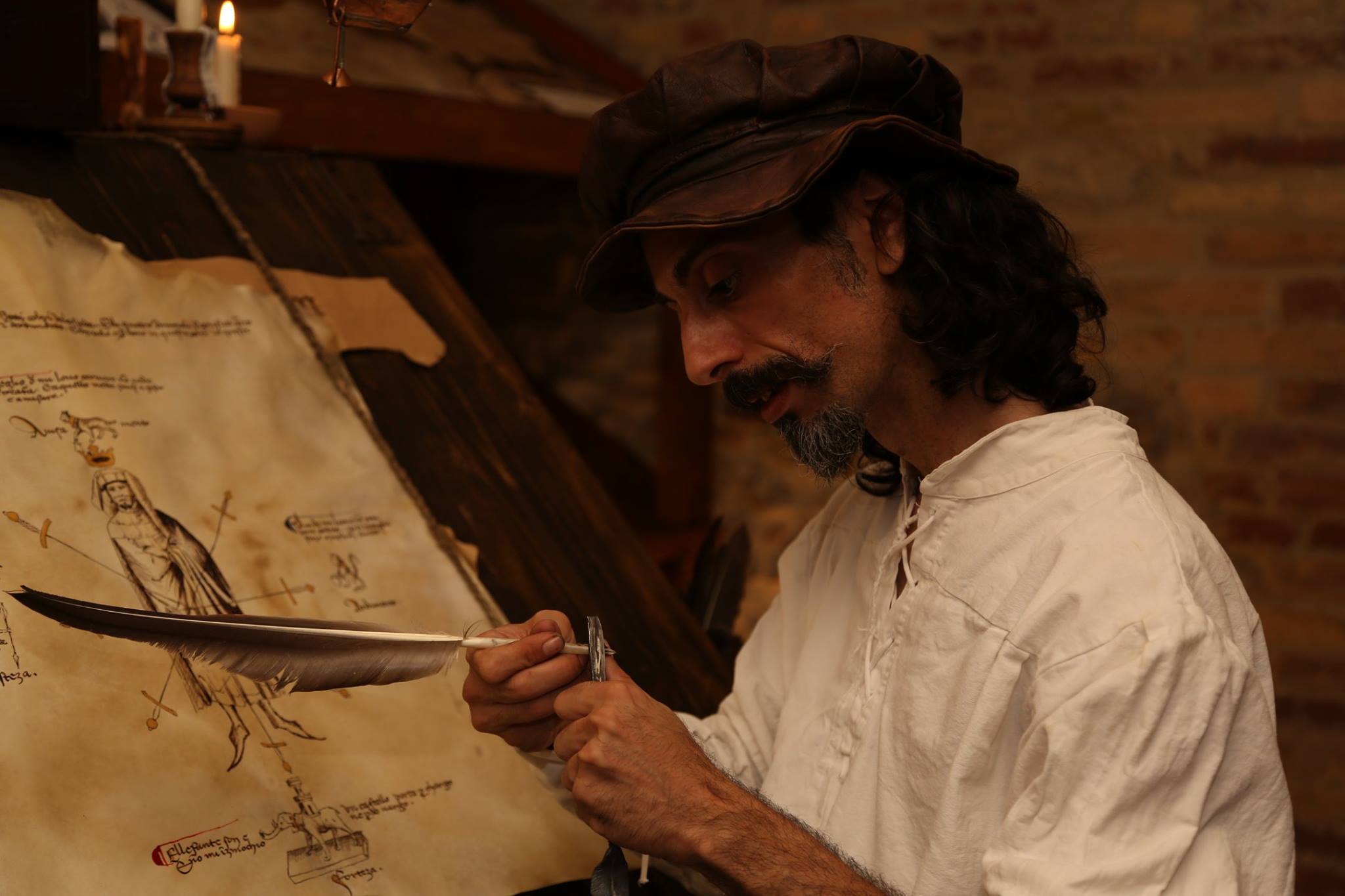 Ma come li hai realizzate le tue opere? «La mia Mappa della Terra di Mezzo è qualcosa di unico al mondo, qualcosa che non si è mai visto: una pergamena stesa a telaio con i tiranti di canapa, con il telaio fatto a mano su misura proprio per quello specifico pezzo, con l’oro, con il vermiglione in tempera all’uovo, con l’inchiostro fatto a mano con la ricetta medievale. No, io su questo mi sono fortemente opposto, non ho arrecato danni».