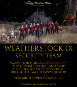 Attualmente, quasi tutti i principali MMO hanno festival alimentati dagli sviluppatori: grandi eventi che danno ai giocatori qualcosa da aspettarsi durante le festività natalizie o tra le principali versioni dei diversi contenuti o espansioni, ma non è così comune vedere eventi di lunga data guidati dai giocatori come Weatherstock superare la prova di tempo. Questo non vuol dire che non esistano altrove, tuttavia non viene in mente alcun evento di questo tipo che sia così amato all’interno della comunità del gioco anche al di fuori del server host. I giocatori di Lotro hanno personaggi creati su Landroval solo per partecipare a questo concerto ogni anno, parcheggiati a Weathertop per assicurarsi che quando si accede siamo già pronti a partire dal luogo dove avverrà il concerto. È una cosa interessante nella comunità Lotro.