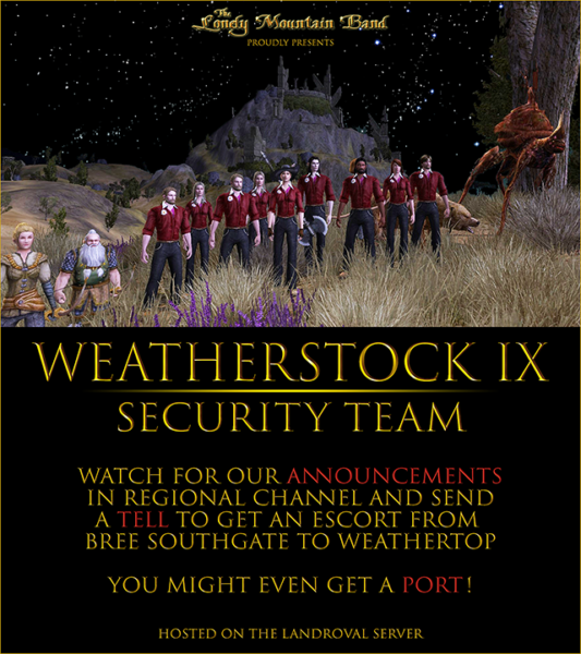 È in questo mondo immaginario e videoludico che si inserisce Weatherstock e in generale la comunità che lo circonda, lo organizza, lo vive al meglio ed è questo che rende originale la comunità di Lotro. Si tratta di una celebrazione non solo delle band che salgono sul palco (oltre 20 quest’anno!), ma della comunità nel suo insieme. I giocatori che volontariamente si occupano della sicurezza del luogo in quel periodo, si prendono del tempo libero per scortare i giocatori di livello più basso al concerto, evitando loro di essere uccisi nelle pericolose Terre Solitarie, non è che la punta dell’iceberg. I membri della community che organizzano il concerto, le band che vi prendono parte per intrattenere, perfino i vari streamer che assicurano che se non si può farlo di persona lo si può seguire da remoto: tutto questo dimostra quanto grande possa essere la comunità di Lotro.
