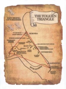 Ed è stato un viaggio lungo quasi quanto quello intrapreso da Bilbo Baggins, ma Phil Mathison, un insegnante di chitarra di Newport, è riuscito finalmente a completare il “triangolo” di Tolkien nell’East Yorkshire. Nel 2012, Mathison ha pubblicato il suo libro Tolkien In East Yorkshire, 1917-1918, An Illustrated Tour. Lo studio è una cronologia e un itinerario molto dettagliato della permanenza di Tolkien nello Yorkshire orientale. Mathison è stato anche determinante nel percorso che ha portato ad avere targhe blu posizionate su edifici legati al suo tempo in questa regione. Infatti, se la targa è finanziata dai sostenitori, l’evento è stato organizzato dallo stesso Mathison, che così ha anche materialmente chiuso il “triangolo”: sempre grazie a lui, altre due placche sono state installate al Dennison Center di Hull, che ospitava il Brooklands Hospital durante la Prima Guerra Mondiale, e ad Hornsea, dove sua moglie soggiornò al n.1 Bank Terrace.