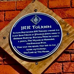 J.R.R. Tolkien scrisse The Voyage of Éarendel the Evening Star nel 1914 durante una visita alla fattoria Phoenix di sua zia Jane Neave a Gedling, vicino a Nottingham. La poesia – che scrisse lì il 24 settembre – fu la scintilla che accese l’intera sua mitologia successiva. E per ricordare questo evento una nuova targa blu è stata apposta il 2 aprile 2022 alla stazione ferroviaria di Gedling. Le “blue plaques” sono delle installazioni permanenti che collegano un luogo col suo passato storico relativo a una persona o a un evento. Naturalmente, le zone di Birmingham e Oxford sono particolarmente importanti per capire la vita e le opere di Tolkien, ma il Nottinghamshire, malgrado sia legato a Tolkien per un periodo più breve, ha comunque avuto una parte nella sua vita e come fonte d’ispirazione per la sua nascente mitologia.