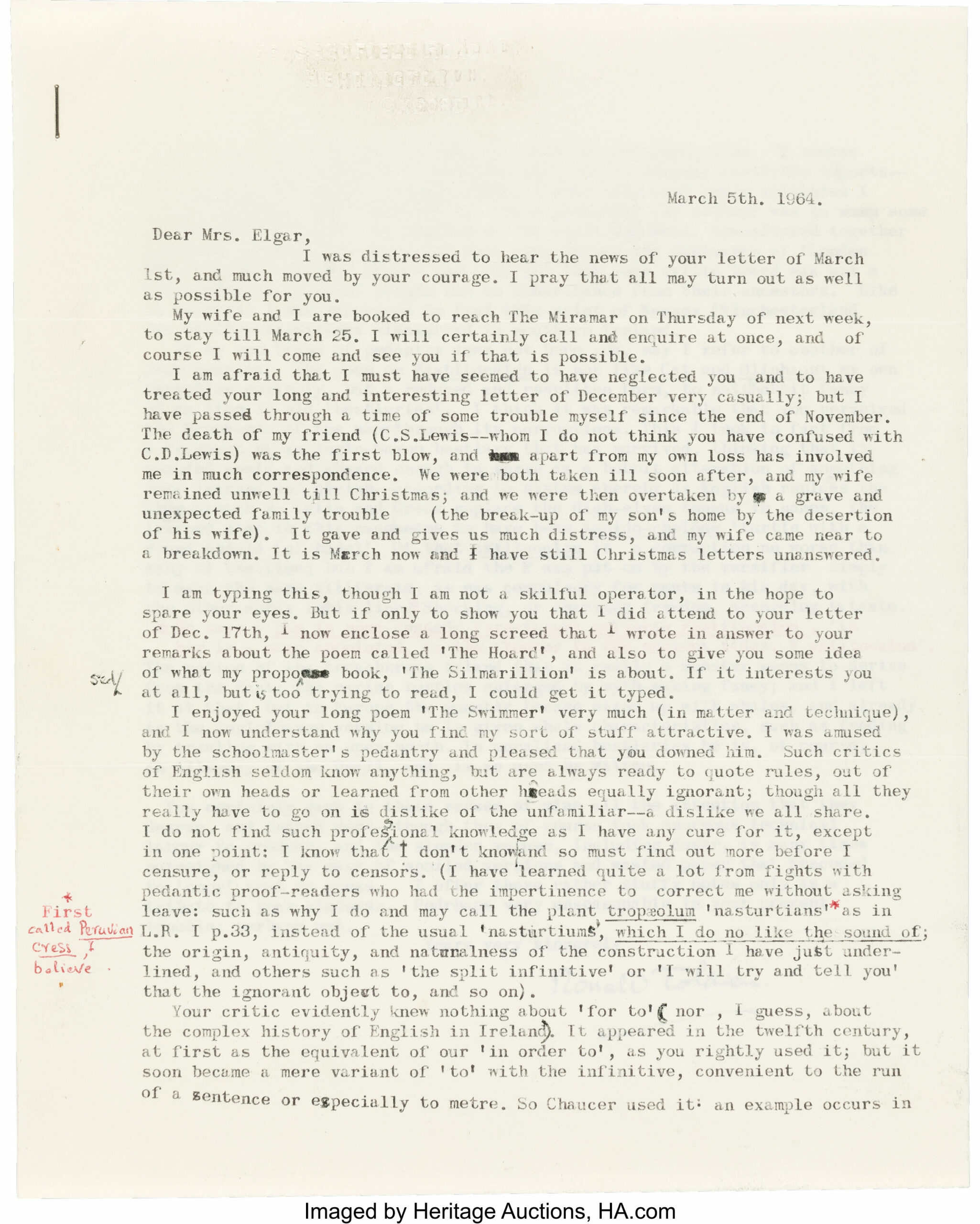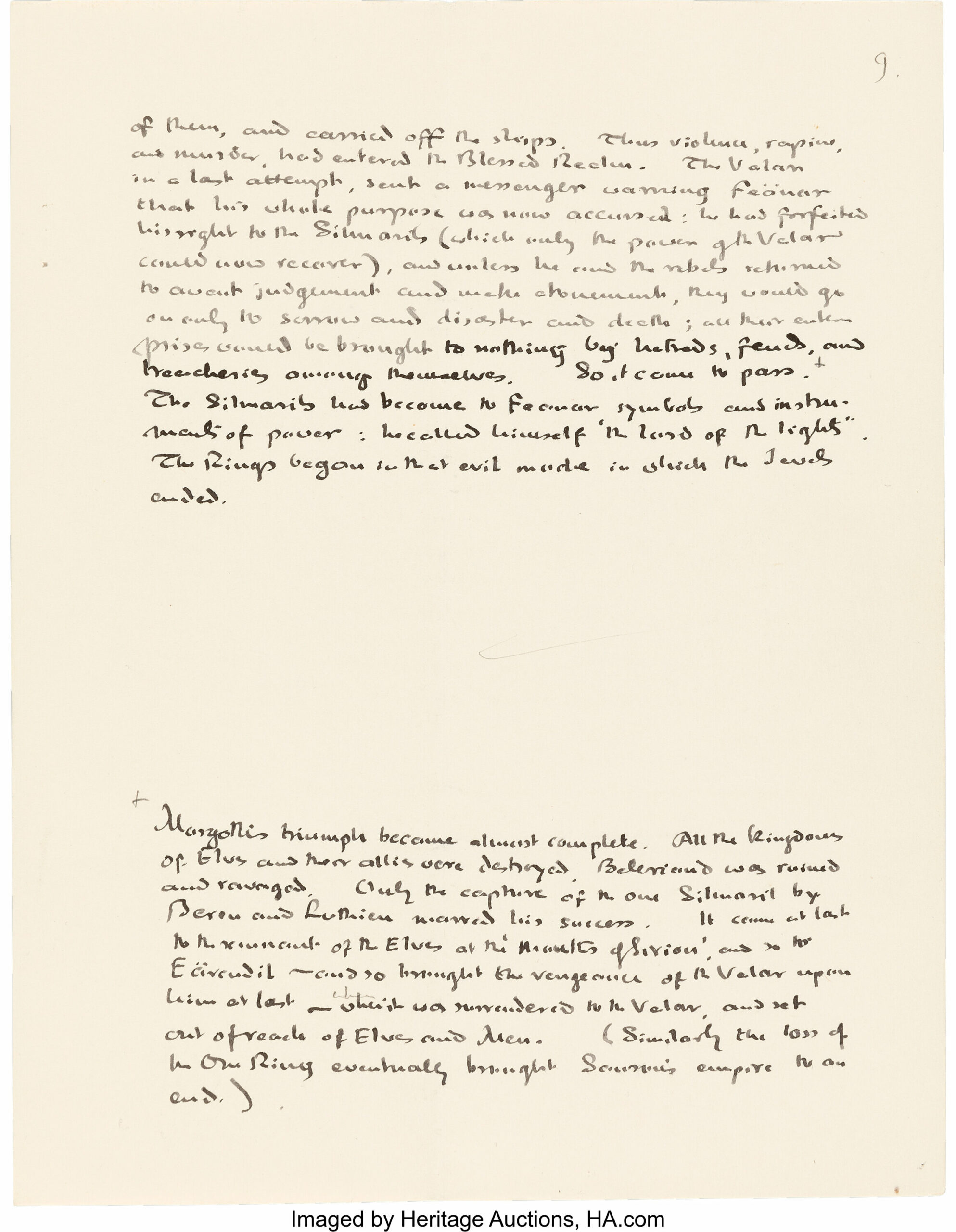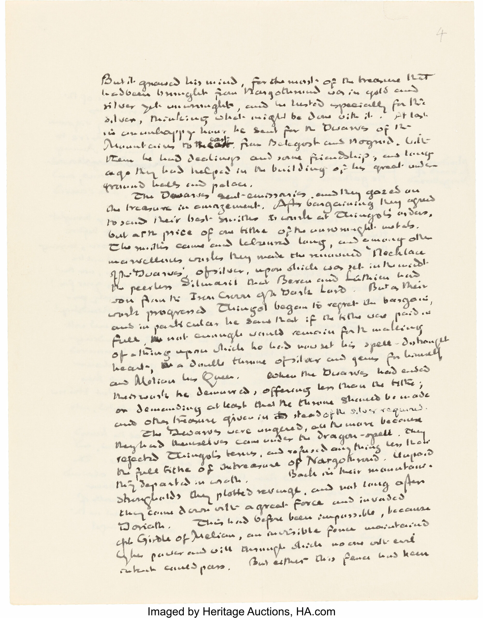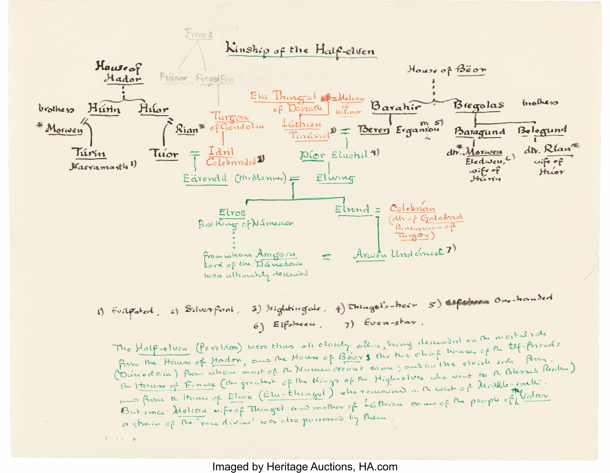 Per la cronaca, l’asta si svolgerà a Dallas il 16 luglio presso Heritage Auctions e la base da cui si parte per le offerte è di 15mila dollari. Il lotto include la rara tabella genealogica intitolata “La parentela dei mezzelfi” (Kinship of the Half-elven), la lettera firmata alla signora Eileen Elgar nella trasmissione del manoscritto, e il manoscritto stesso. [Aggiornamento: l’intero lotto è stato poi comprato da un privato anonimo per 150mila dollari il 16 luglio 2022].