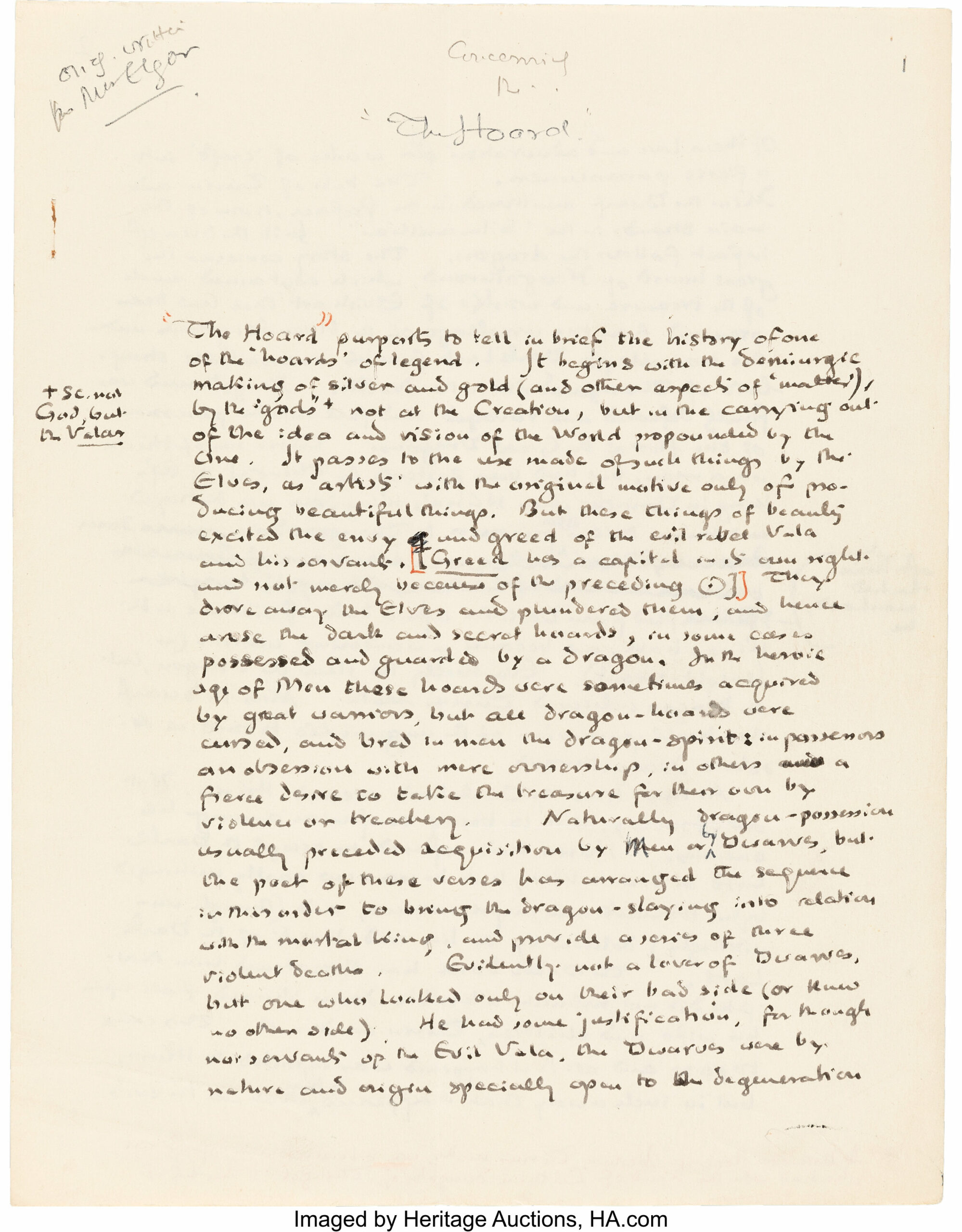 È stato ritrovato un importante manoscritto di Tolkien, di cui si sapeva pochissimo e i cui contenuti erano solo stati descritti in maniera sommaria. E un grosso contributo al ritrovamento è stato dato anche dall’AIST. Il manoscritto ha il titolo di Concerning … ‘The Hoard’, era stato visto solo per un’asta negli anni Ottanta, e che potrebbe cambiare la visione che si ha di un capitolo del Silmarillion e del popolo dei Nani della Terra di Mezzo. Ma è meglio cominciare dal principio!