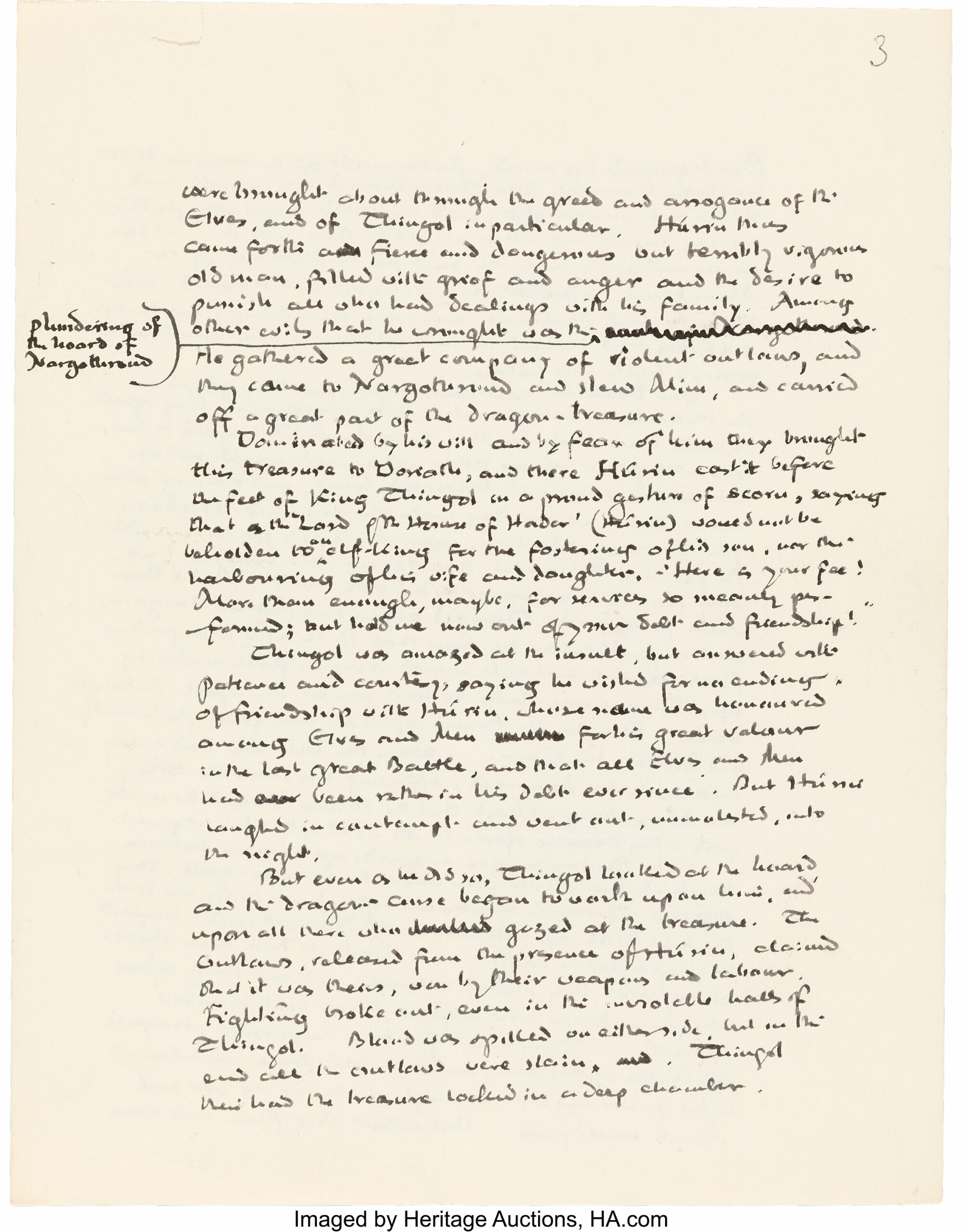 Quindi, se si avesse avuta traccia molto prima di Concerning … ‘The Hoard’, l’unico errore dichiarato come tale da Christopher nel Silmarillion sarebbe stato corretto e ci sarebbero state frasi come questa: «A difesa dell’onestà dei Nani, tuttavia, si può dire che nulla fu sottratto da tutti i suoi tesori tranne il tesoro di Nargothrond».