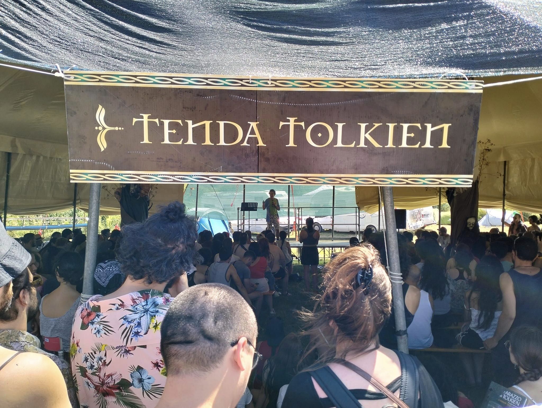 curata insieme a Dario Valentini, mentre poi ha dialogato anche con Loredana Lipperini in Lo Specchio di Galadriel: sogni e ossessioni per elfi e fate, dal Medioevo a oggi. Rialti ha riflettuto intorno al tema dell’apparenza/apparizione, declinato nel mondo di creature fantastiche che da secoli stimolano le menti umane in cerca di risposte altre rispetto all’immediatamente visibile. Roberto Arduini ha, come di consueto, declinato il tema di questa edizione in chiave tolkieniana, illustrando davanti a una folla attentissima il percorso narrativo nel Signore degli Anelli di Saruman, un personaggio che incarna l’abuso della tecnologia e la brama di conoscenza estrema che si muta in dominio sugli altri e sull’ambiente circostante. Le numerose domande finali ha dimostrato come questi temi siano molto sentiti tra i giovani lettori, che in Tolkien trovano risposte su come sia necessario trovare il giusto equilibrio con la Natura. Stefano Giorgianni, infine, ha tracciato un percorso sociologico parlando dell’ispirazione che il mondo della musica – soprattutto quello del rock, progressive e metal – ha negli anni dimostrato verso Tolkien, giungendo a definire i due personaggi che quasi hanno incarnato i due percorsi più antitetici e paralleli: Hansi Kürsch e Burzum. Oltre a varie conferenze sull’autore e i suoi personaggi, la novità di quest’anno era la possibilità per il pubblico di leggere liberamente i suoi libri e creare un dibattito con gli altri, cosa che si è ripetuta costantemente all’ora del pranzo.