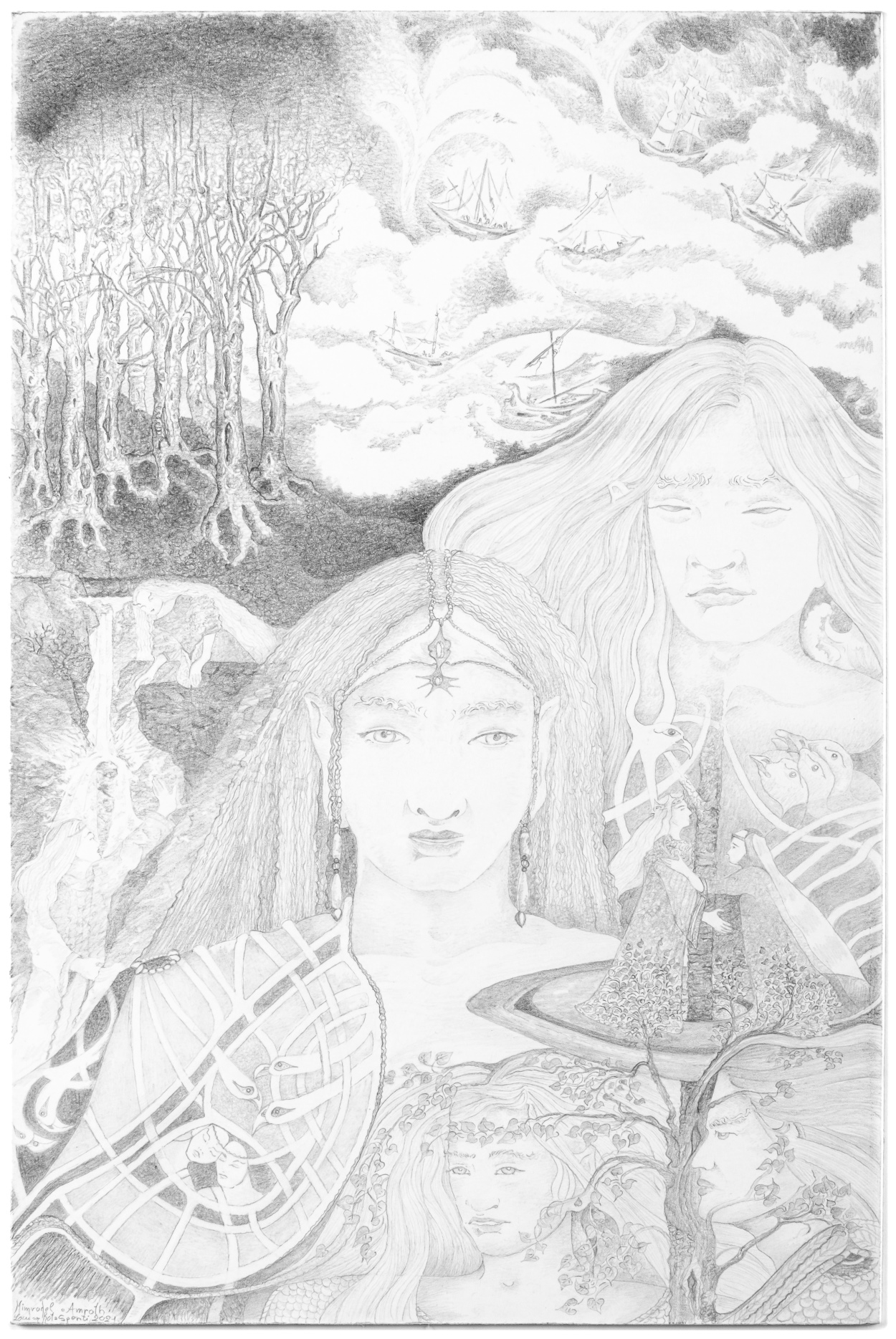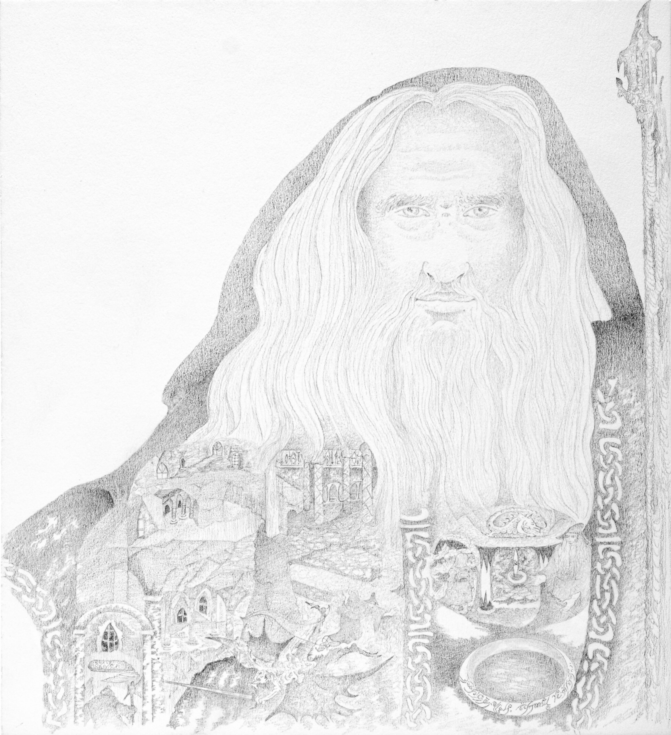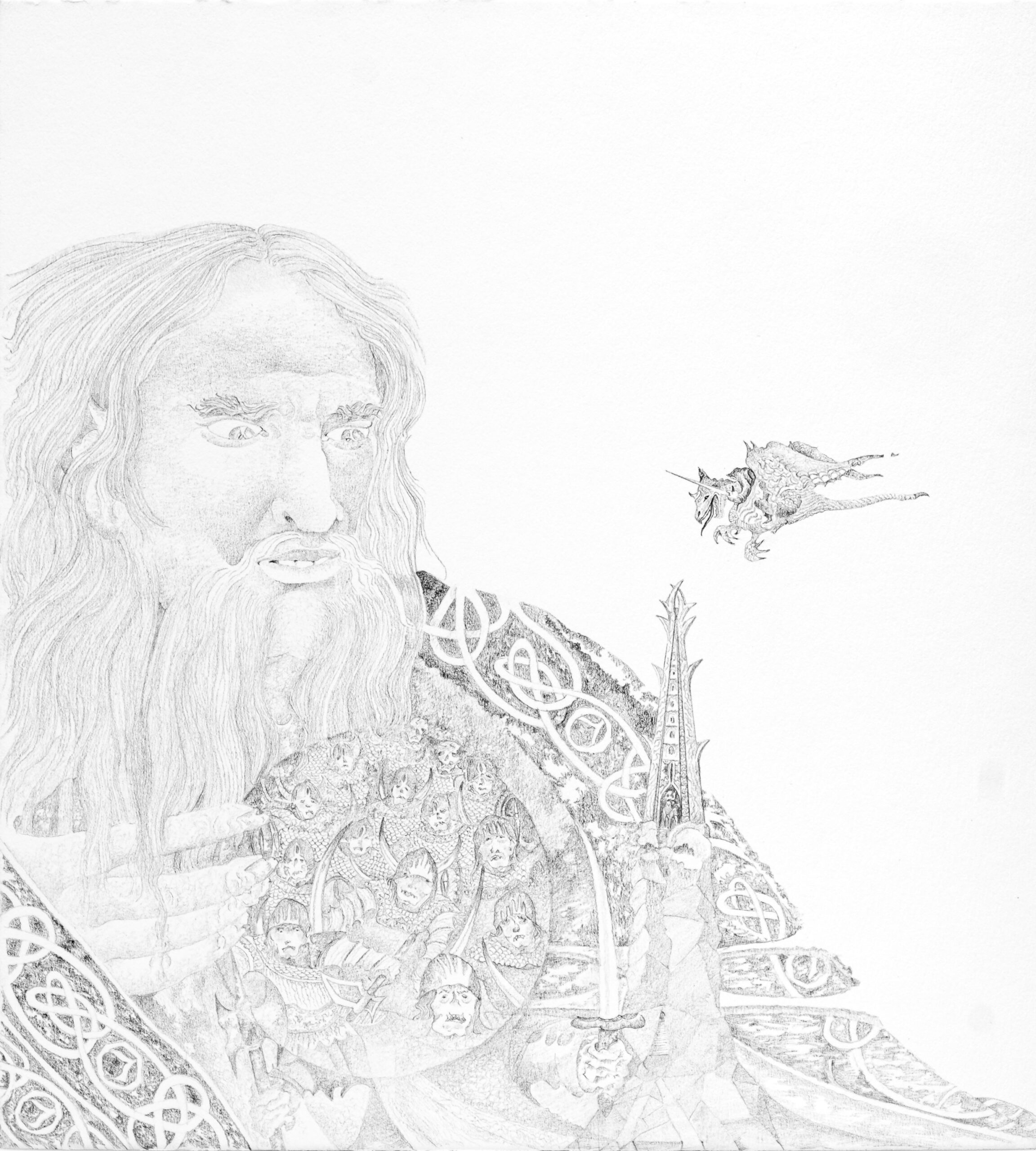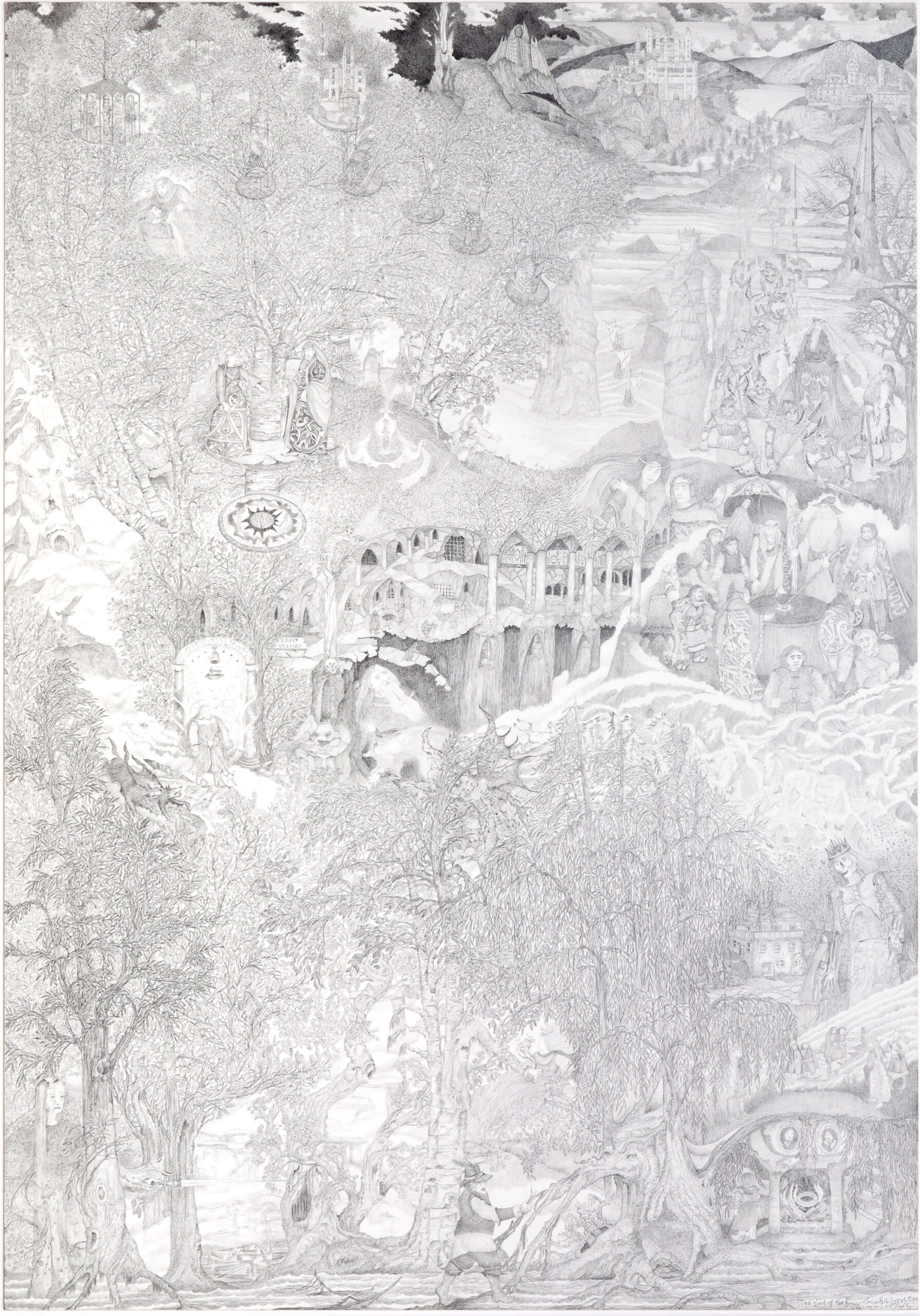 «Ho iniziato a lavorare su Tolkien nei primi anni ’80 realizzando un ciclo di 33 opere (acquarelli e matite su cartoni Shoeller) dedicate a Il Signore degli Anelli», racconta Luisa Rota Sperti. In questa fase pittorica, però, il suo tema principale è la montagna: l’ascesa fisica, l’ascesa spirituale. È la montagna dell’iniziazione, della prova magica la figura determinante di questo grande ciclo (1979-1982, in 33 tavole). «All’inizio del nuovo millennio, dopo un lungo periodo dedicato a montagne e alpinisti, ho ripreso la tematica tolkieniana con 44 opere ispirate a Il Signore degli Anelli, al Silmarillion, allo Hobbit e ai Racconti perduti. Nelle grandi tavole ho privilegiato raccontare con la matita paesaggi e architetture, mentre in quelle più piccole ho intrecciato questi elementi con i volti dei personaggi che animano le storie e ne sono protagonisti». conculed, infine, l’artista dicendo: «Rispetto ai libri che mi hanno e continuano a ispirarmi, ho i volumi originali in inglese e diverse e differenti traduzioni fin da quell’edizione in italiano del 1971 in cui gli Elfi erano Gnomi».