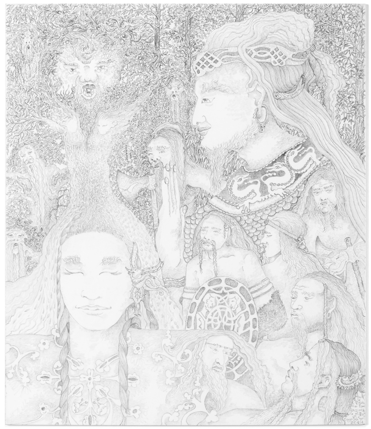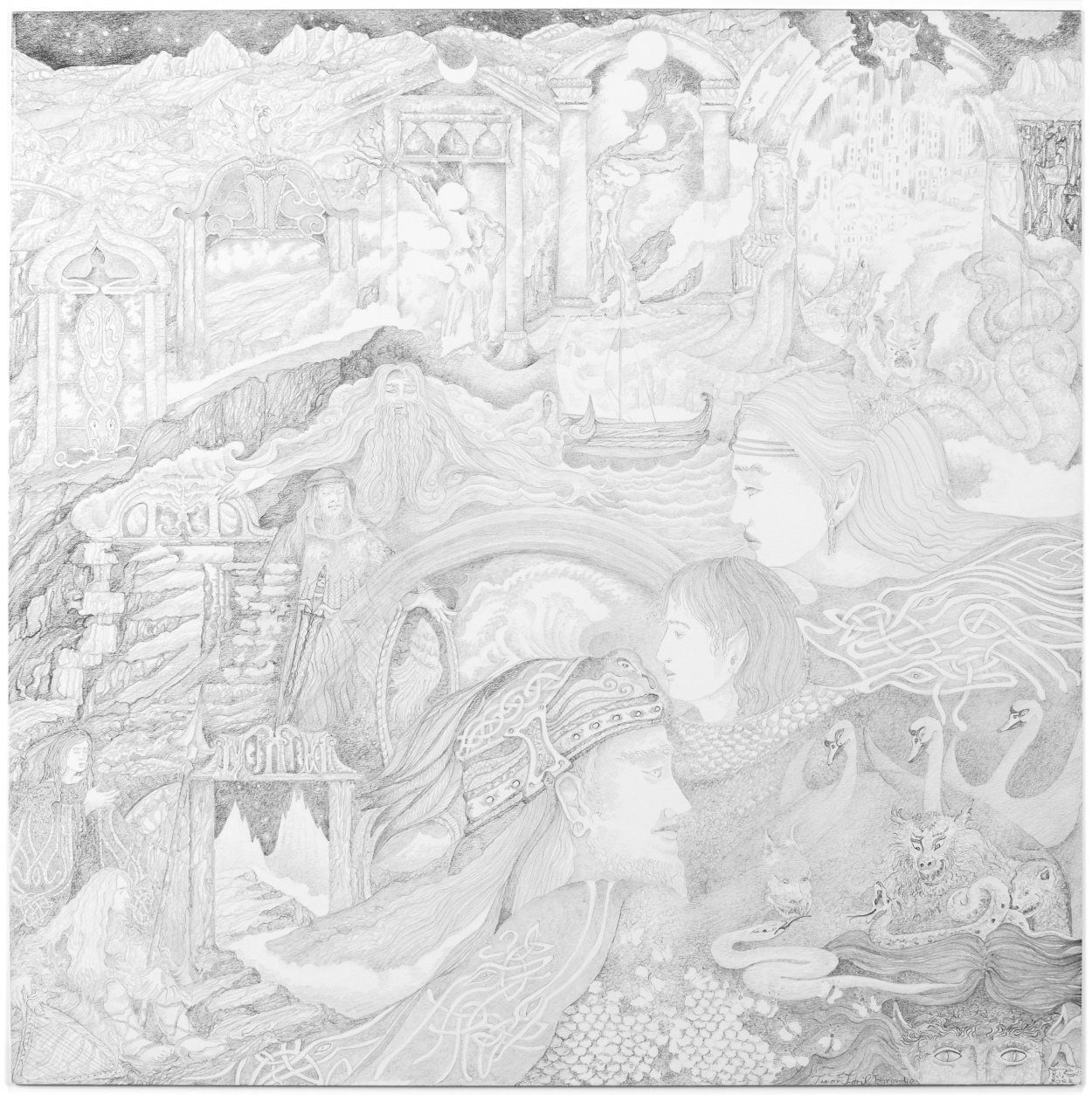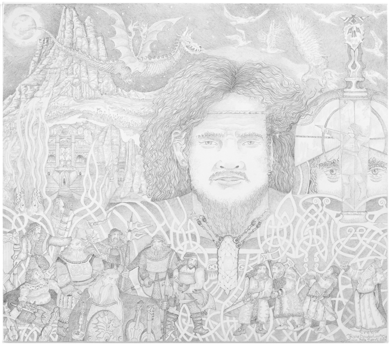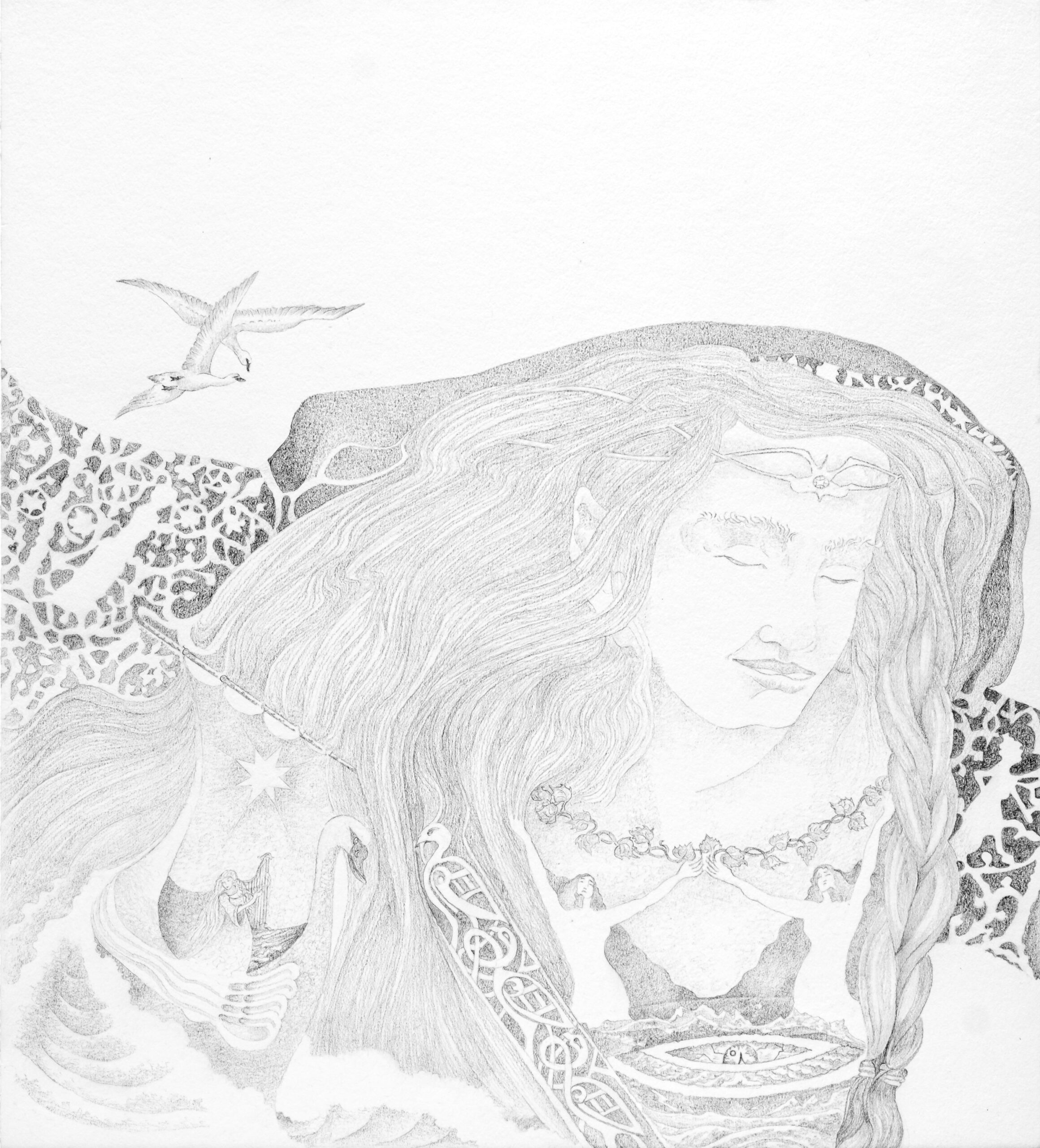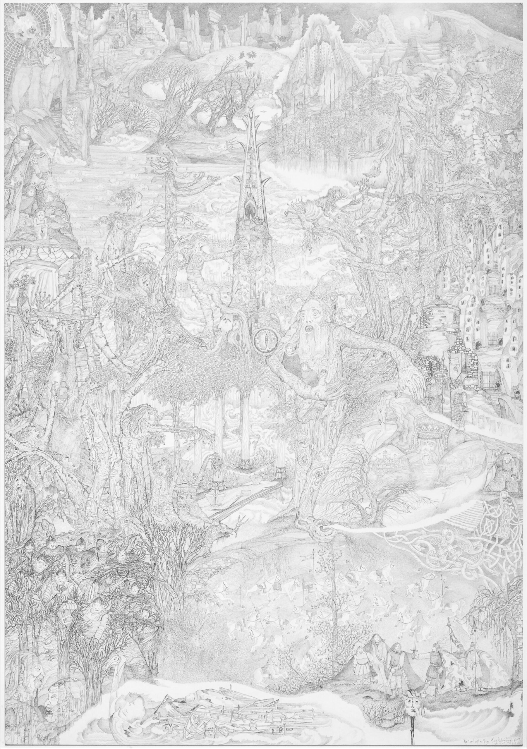 «Ho iniziato a lavorare su Tolkien nei primi anni ’80 realizzando un ciclo di 33 opere (acquarelli e matite su cartoni Shoeller) dedicate a Il Signore degli Anelli», racconta Luisa Rota Sperti. In questa fase pittorica, però, il suo tema principale è la montagna: l’ascesa fisica, l’ascesa spirituale. È la montagna dell’iniziazione, della prova magica la figura determinante di questo grande ciclo (1979-1982, in 33 tavole). «All’inizio del nuovo millennio, dopo un lungo periodo dedicato a montagne e alpinisti, ho ripreso la tematica tolkieniana con 44 opere ispirate a Il Signore degli Anelli, al Silmarillion, allo Hobbit e ai Racconti perduti. Nelle grandi tavole ho privilegiato raccontare con la matita paesaggi e architetture, mentre in quelle più piccole ho intrecciato questi elementi con i volti dei personaggi che animano le storie e ne sono protagonisti». conculed, infine, l’artista dicendo: «Rispetto ai libri che mi hanno e continuano a ispirarmi, ho i volumi originali in inglese e diverse e differenti traduzioni fin da quell’edizione in italiano del 1971 in cui gli Elfi erano Gnomi».