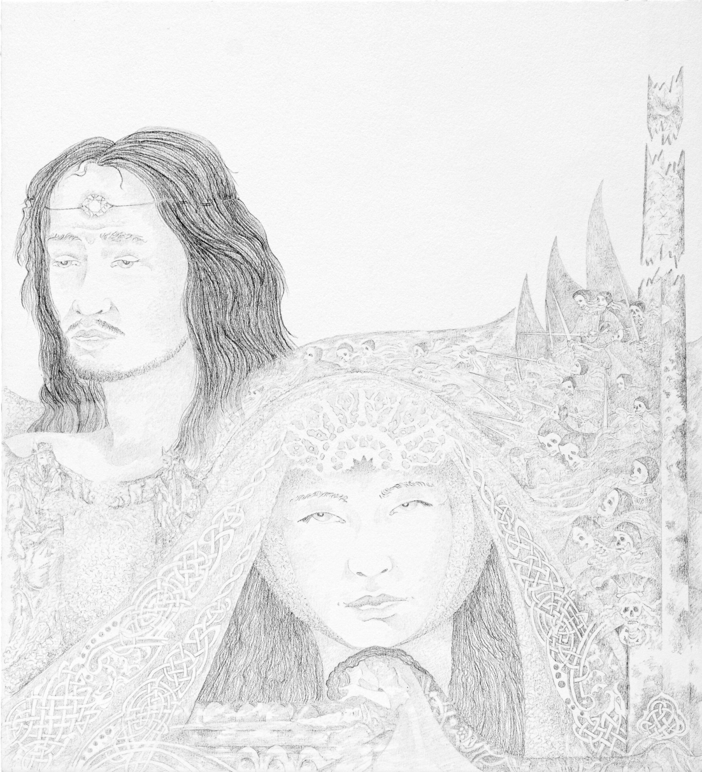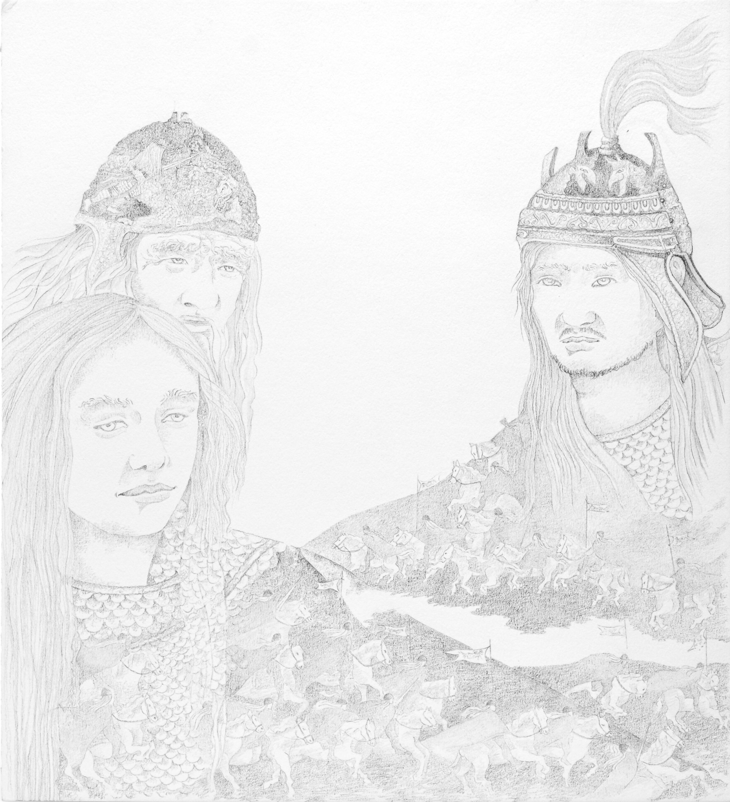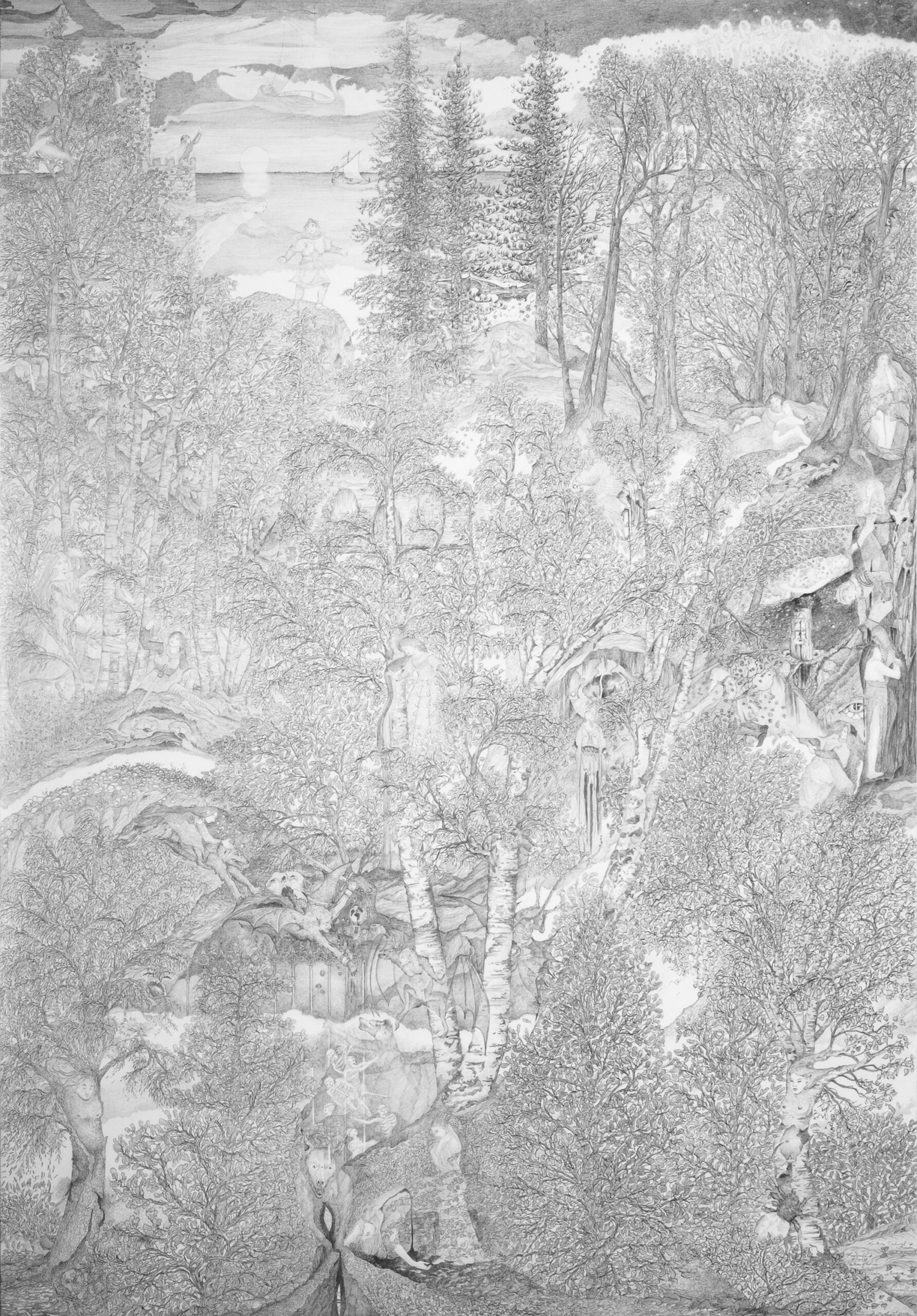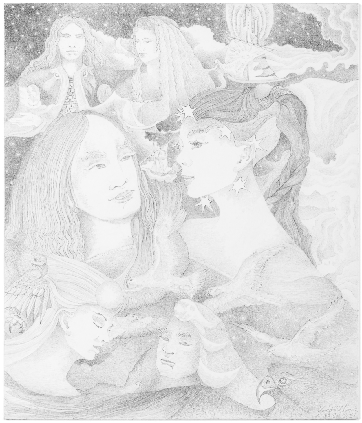 «Ho iniziato a lavorare su Tolkien nei primi anni ’80 realizzando un ciclo di 33 opere (acquarelli e matite su cartoni Shoeller) dedicate a Il Signore degli Anelli», racconta Luisa Rota Sperti. In questa fase pittorica, però, il suo tema principale è la montagna: l’ascesa fisica, l’ascesa spirituale. È la montagna dell’iniziazione, della prova magica la figura determinante di questo grande ciclo (1979-1982, in 33 tavole). «All’inizio del nuovo millennio, dopo un lungo periodo dedicato a montagne e alpinisti, ho ripreso la tematica tolkieniana con 44 opere ispirate a Il Signore degli Anelli, al Silmarillion, allo Hobbit e ai Racconti perduti. Nelle grandi tavole ho privilegiato raccontare con la matita paesaggi e architetture, mentre in quelle più piccole ho intrecciato questi elementi con i volti dei personaggi che animano le storie e ne sono protagonisti». conculed, infine, l’artista dicendo: «Rispetto ai libri che mi hanno e continuano a ispirarmi, ho i volumi originali in inglese e diverse e differenti traduzioni fin da quell’edizione in italiano del 1971 in cui gli Elfi erano Gnomi».