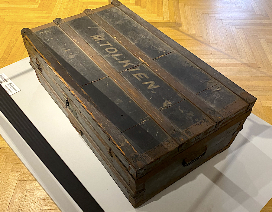 In mostra inoltre anche alcune prime edizioni dei libri di Tolkien e in più fumetti, serie animate e giochi dedicati allo scrittore inglese. «Tra gli oggetti più emozionanti di certo c’è il materiale proveniente dall’Oratorio di Birmingham appartenuto a Tolkien, sua madre Mabel e a padre Francis Xavier Morgan», racconta all’AIST uno dei curatori, Oronzo Cilli. «Su tutti, il baule utilizzato da Mabel Tolkien quando, assieme ai figli Ronald e Hilary, lasciò Bloemfontein per raggiungere Birmingham. Sul baule è scritto “M. Tolkien” e Priscilla, nel 1974, ricordò a proposito che “[mio padre] aveva un ricordo particolarmente toccante che menzionava spesso, ovvero quello di suo padre che dipingeva le iniziali sul baule che faceva parte del bagaglio e che li avrebbe riportati in Inghilterra.
