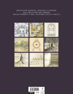 Finalmente, dopo tanti anni, è giunta un’edizione tutta italiana che è allineata al formato di quella originale in inglese: il volume infatti è rilegato con tanto sovraccoperta. La copertina mostra uno degli acquarelli più suggestivi: la montagna di Taniquetil, sulla cui cima si intravedono la aule di Ilmarin. Sul retro alcune delle riproduzioni che si trovano all’interno del volume.
